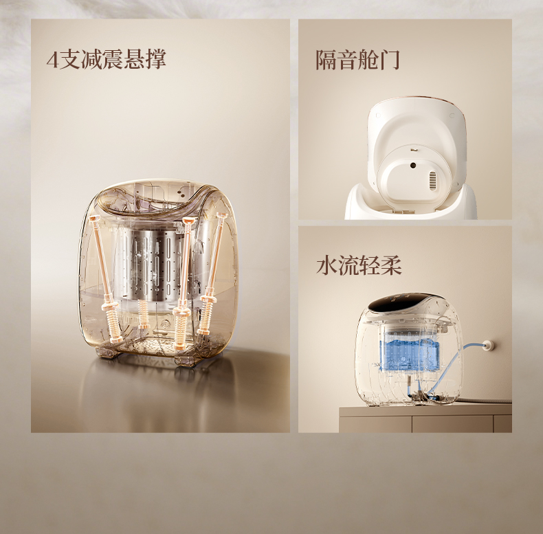 內(nèi)有4條減震吊桿穩(wěn)固支撐保障甩干的同時無異響、不晃動、不移位