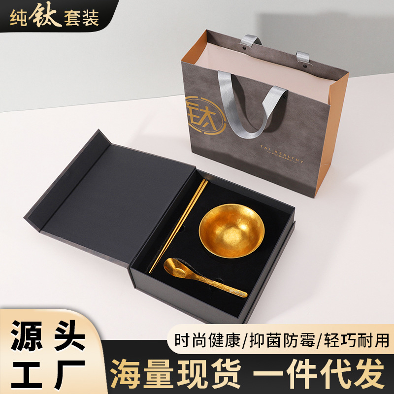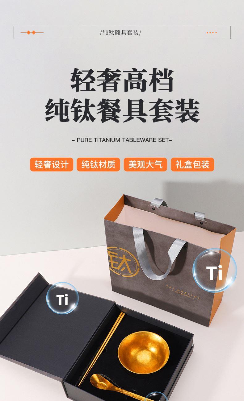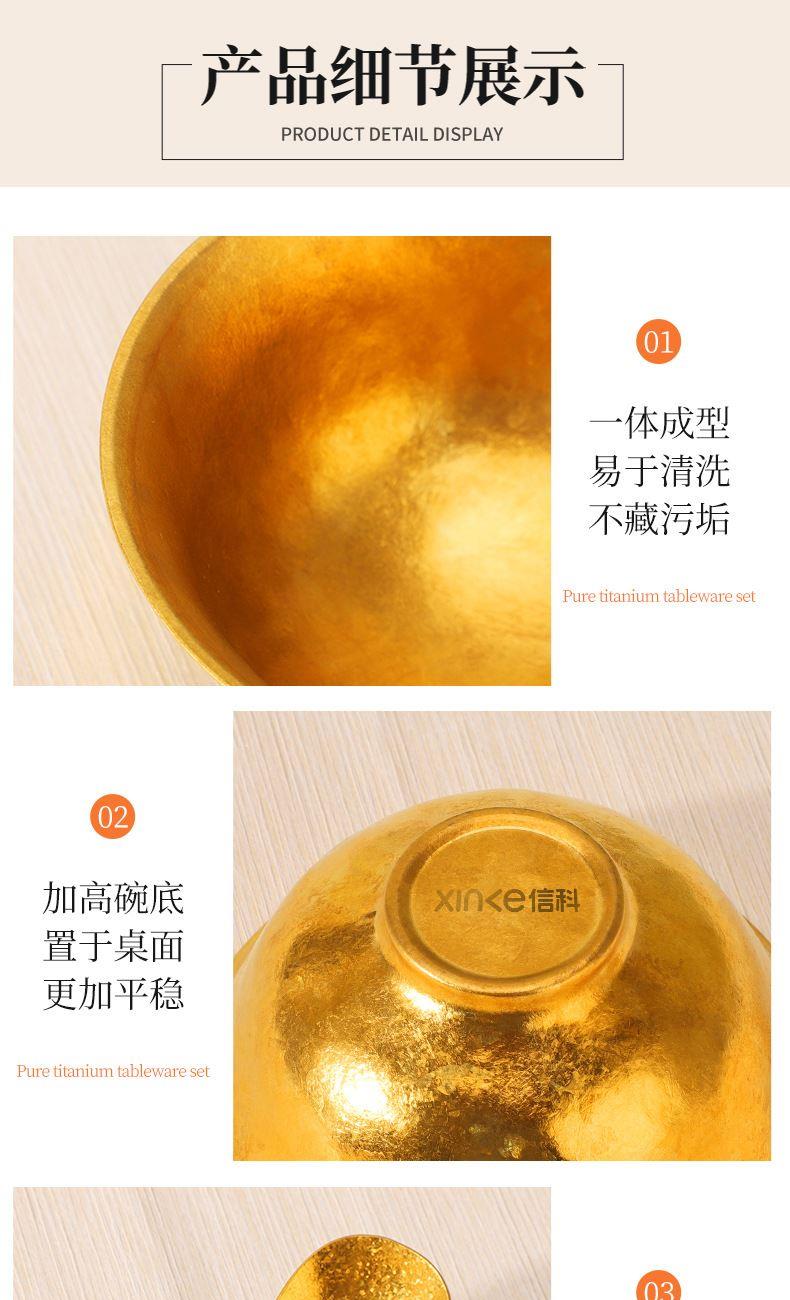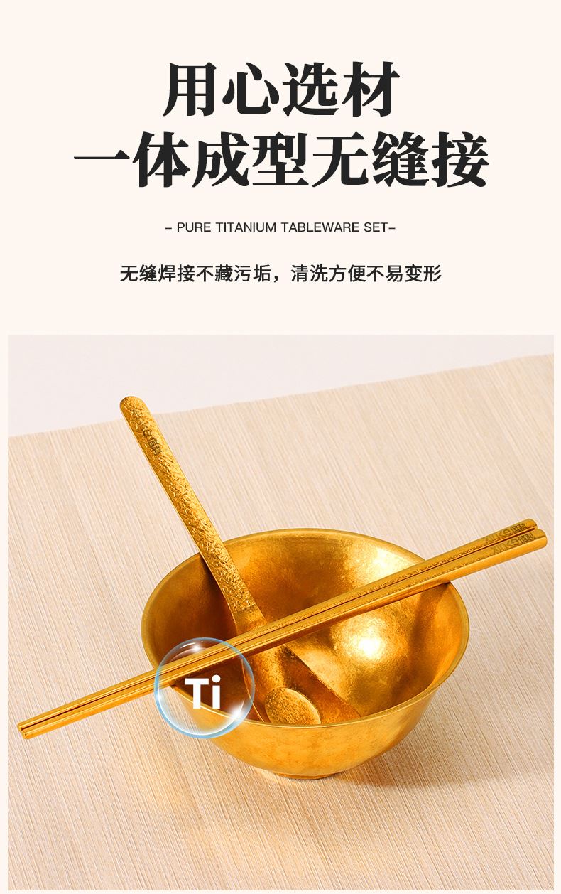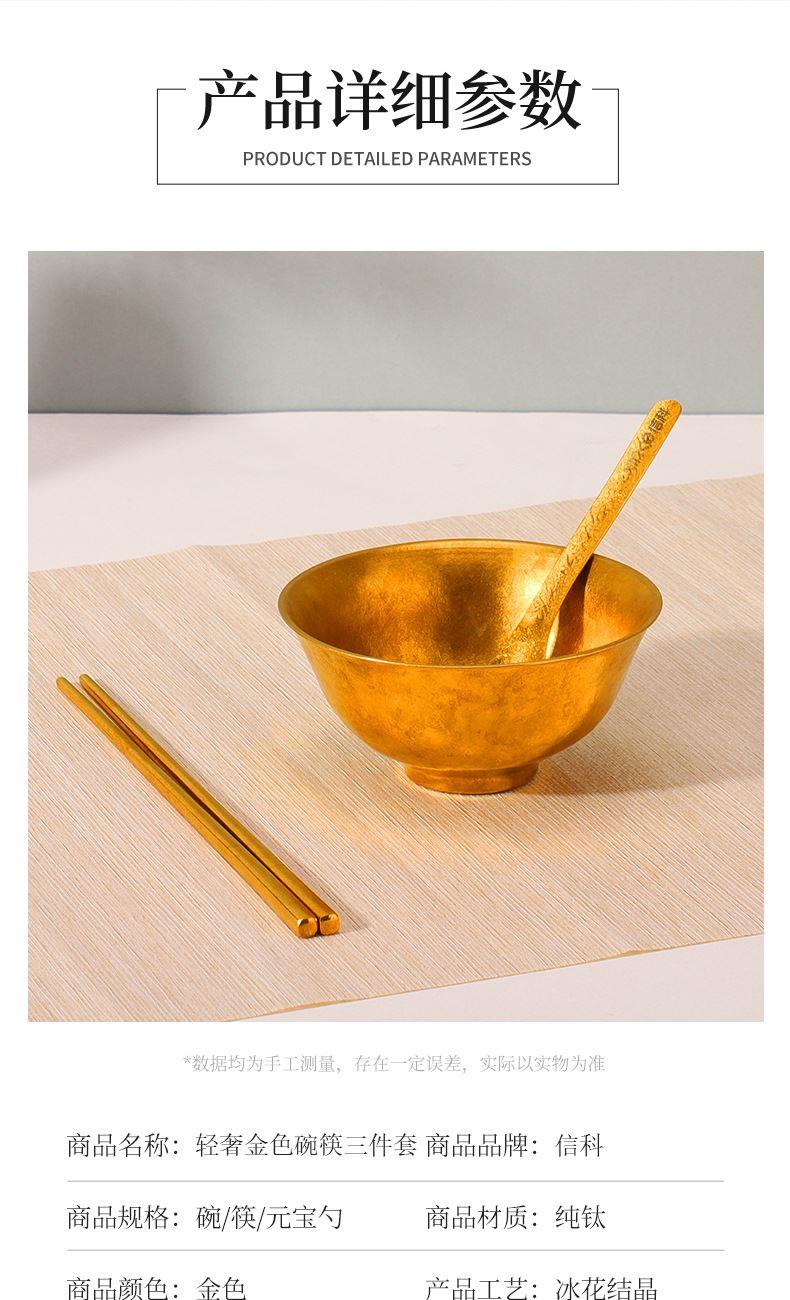 信科純鈦輕奢金色碗筷三件套XTK-301 信科純鈦輕奢金色碗筷三件套XTK-301
