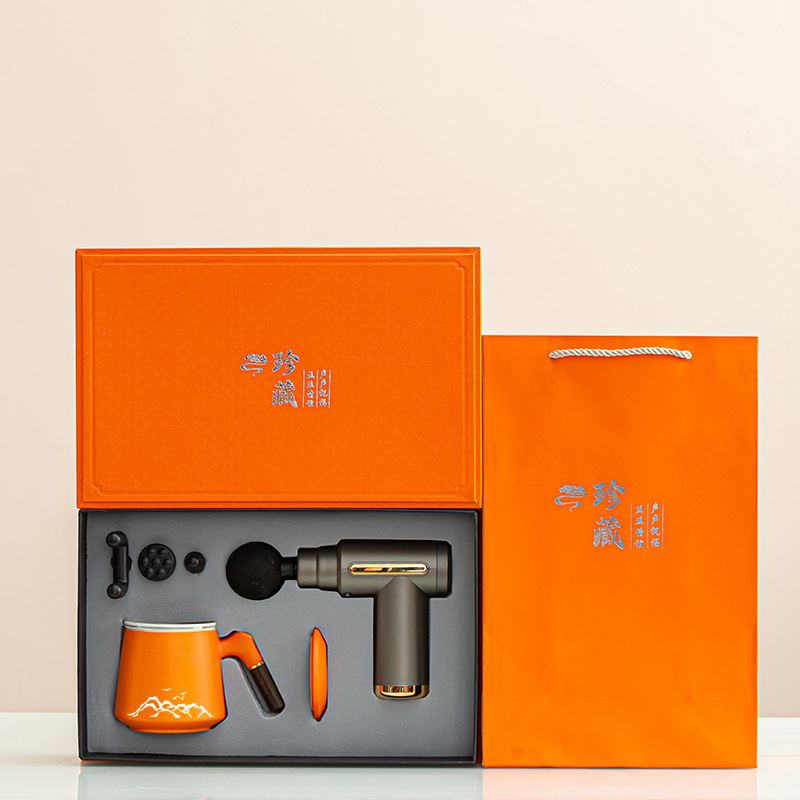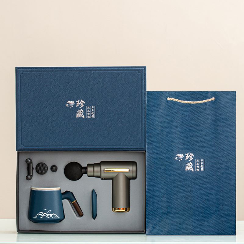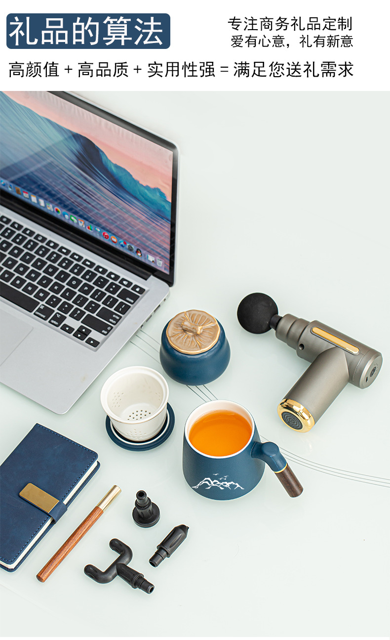 配 制: 1辦公杯 1筋膜槍/頸椎儀 1錦盒 手提袋 規(guī)格: 辦公杯14.5*10.4cm 禮盒38.2*11cm 筋膜槍:17.4*14cm 工藝:商務(wù)實用性禮品,上班族剛需產(chǎn)品。粗陶辦公杯,帶茶漏,專業(yè)級筋膜槍,6檔變速,4種按摩頭,液晶觸屏,深度緩解肌肉酸脹。。