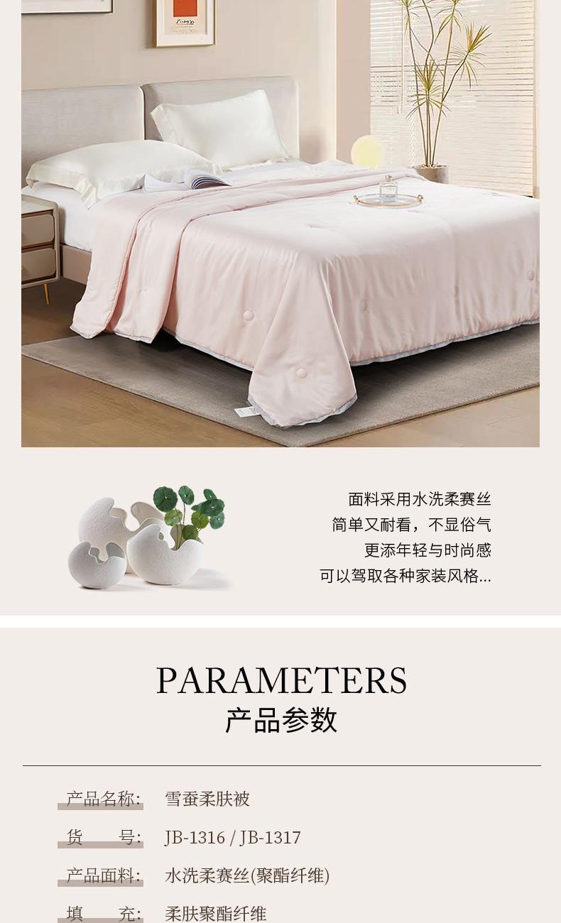 2.會(huì)呼吸的柔膚被!水洗柔賽絲透氣吸濕,柔膚纖維鎖溫不厚重,秋冬蓋不干燥,春夏搭不悶汗,四季舒爽如春。