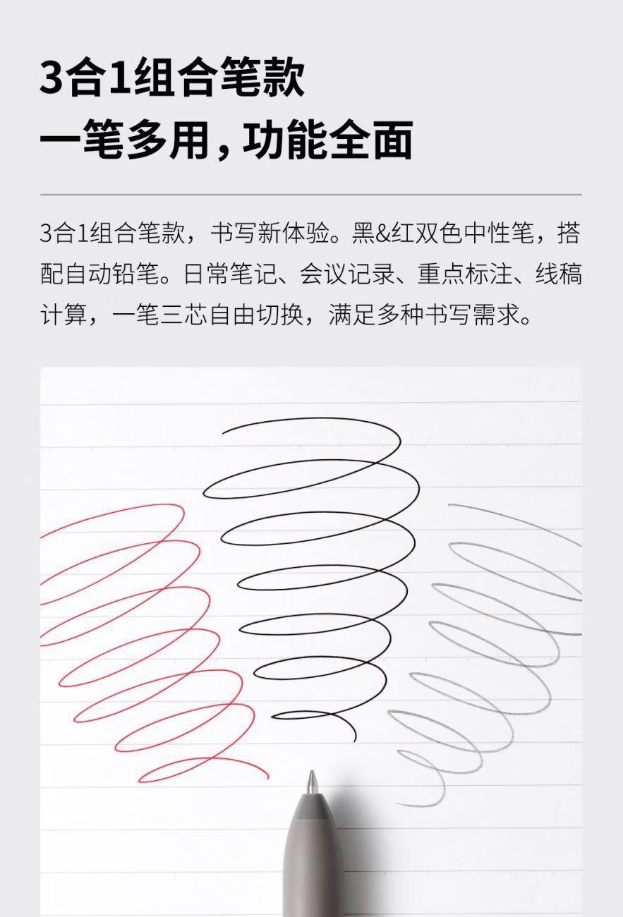 1、3合1組合筆款,中性筆搭配自動(dòng)鉛筆,一筆多用。