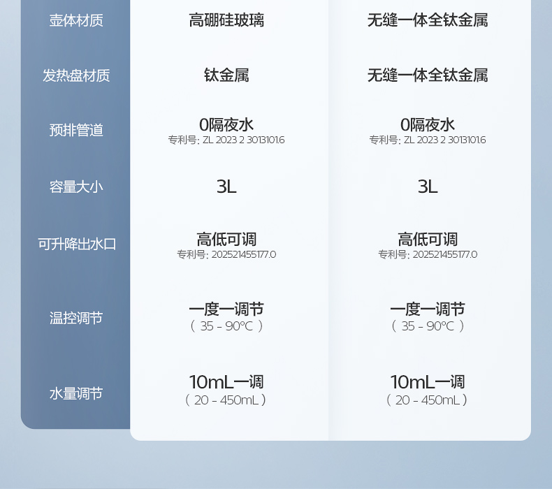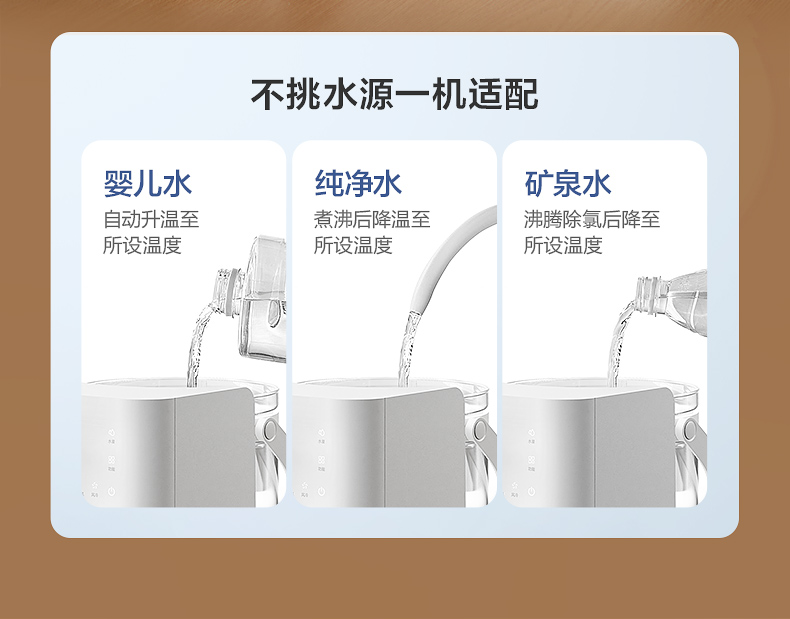 主要材質(zhì):ABS 電壓:220V~50Hz 功率:1200W 容量:3L 預(yù)排技術(shù),確保每次出水潔凈如初 升降式出水口,避免接水飛濺更干凈 3L鈦金屬水壺,滿足全家沖飲需求 溫定量出水,滿足不同沖泡溫度 鈦金屬發(fā)熱盤(pán),穩(wěn)定加熱不易腐蝕 風(fēng)冷快速降溫,沖奶不再久等 接水盤(pán)/回收箱可拆洗,衛(wèi)生看得見(jiàn)