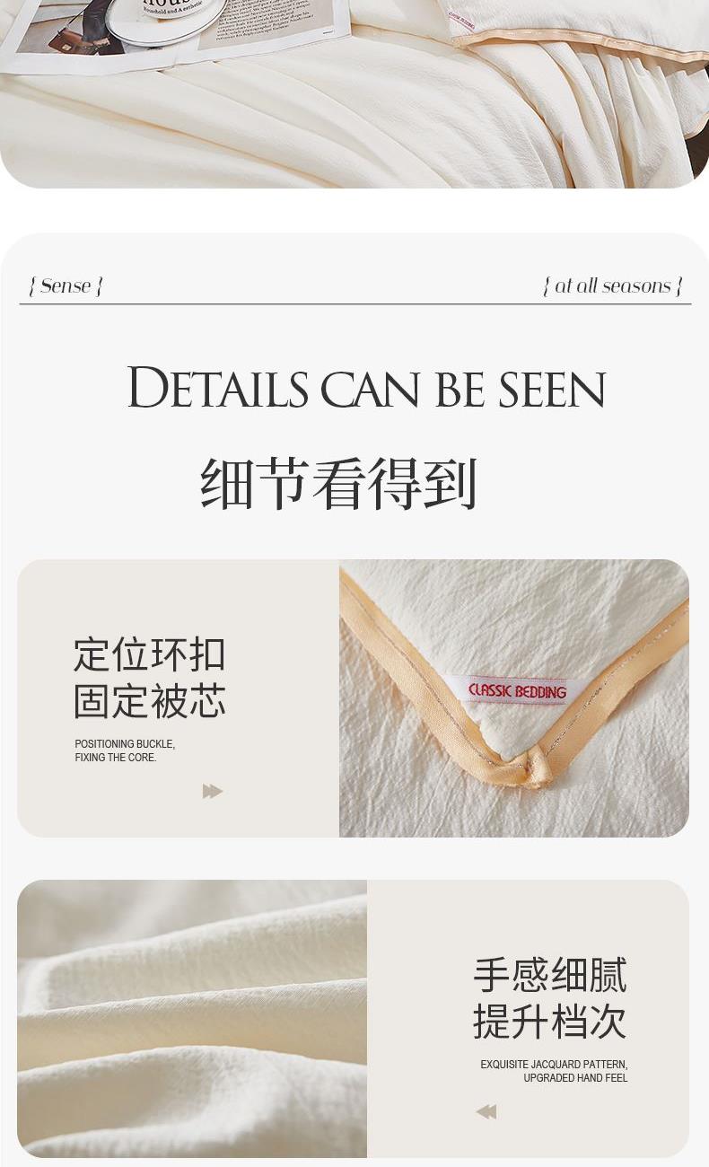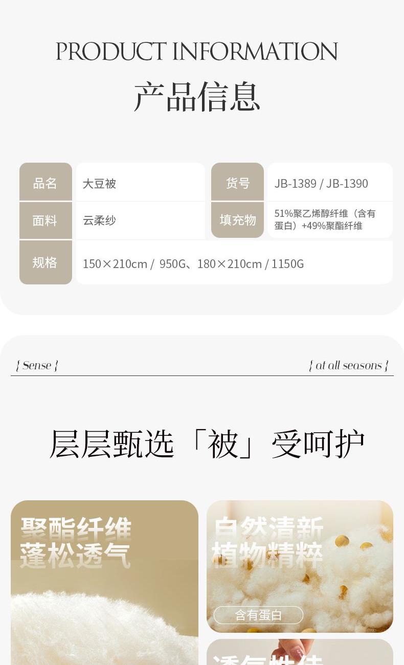 2.肌膚摯愛(ài)的大豆蛋白被!蛋白纖維親膚似真絲,云柔紗外套柔軟貼合,仿佛給肌膚做SPA,溫暖又保濕;
