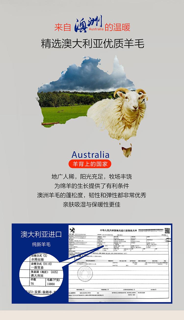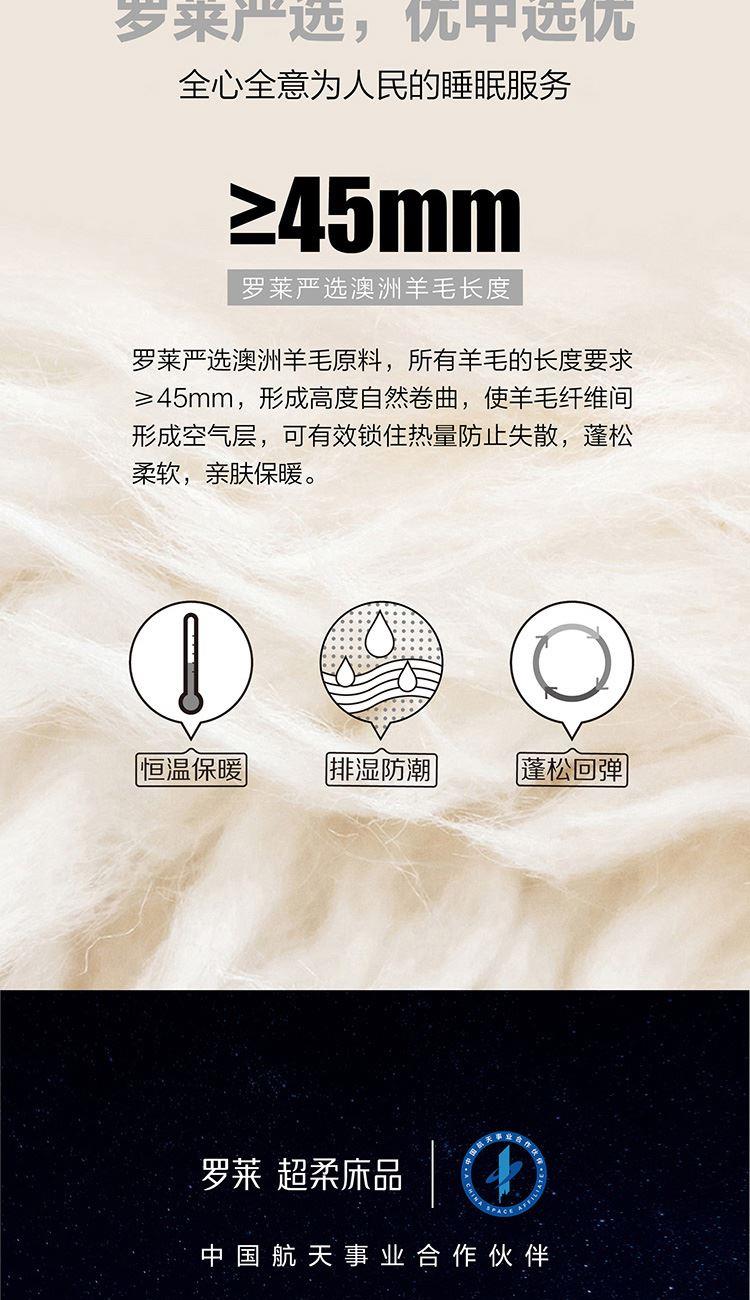 填充物精選澳大利亞羊毛填充,毛質(zhì)柔軟細膩,吸濕能力強,恒溫保暖,天然回彈性佳帶來舒柔溫暖的睡眠體驗!