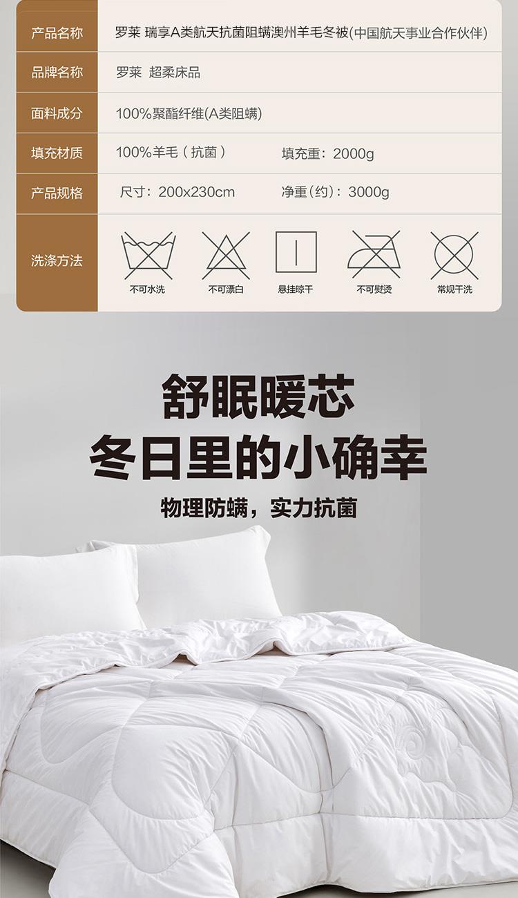 羅萊瑞享A類航天阻螨澳州羊毛冬被200*230cm