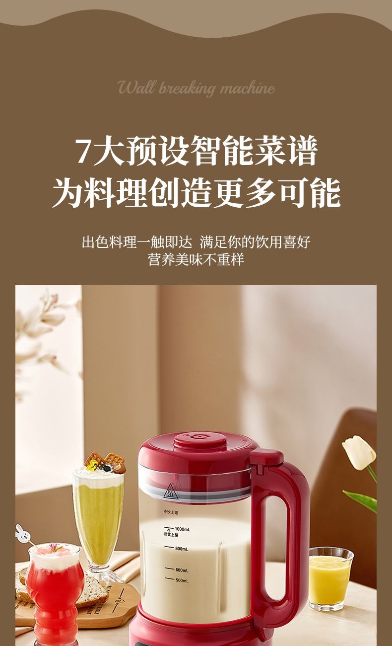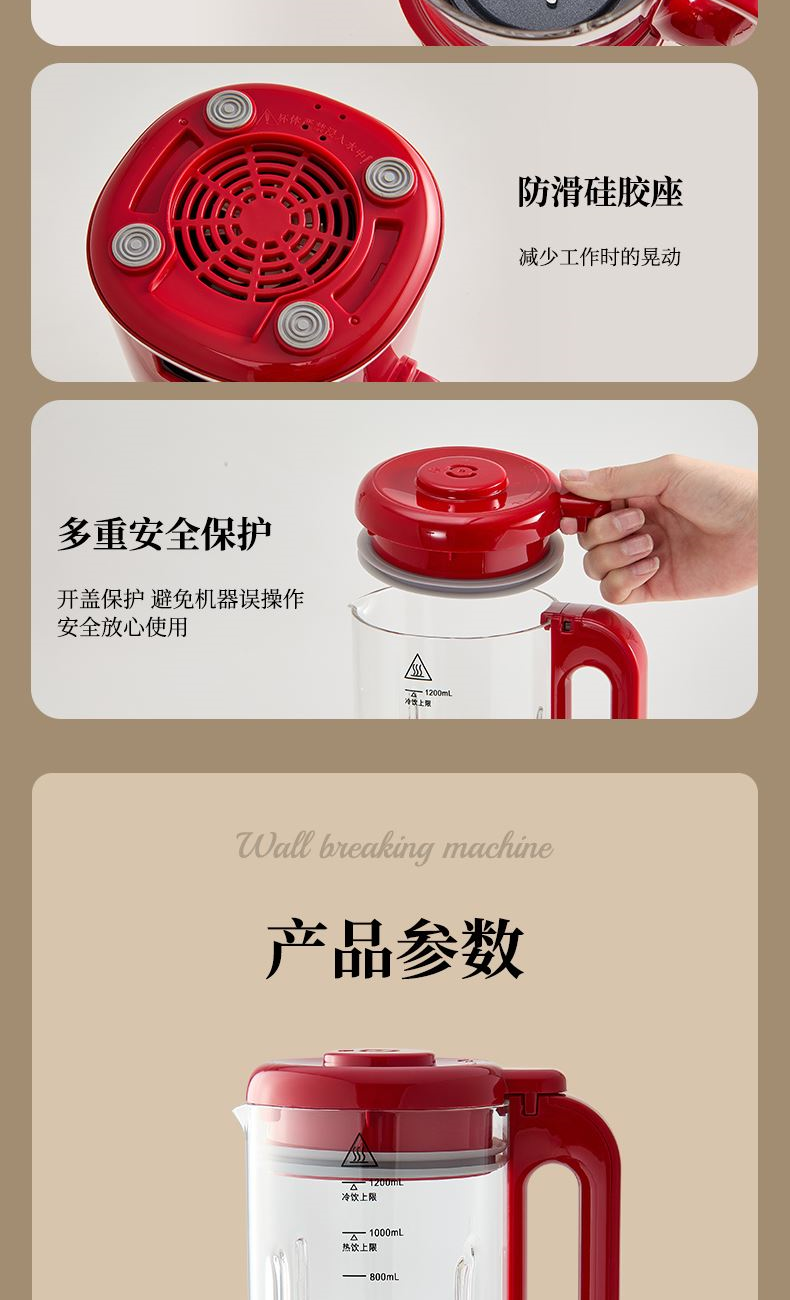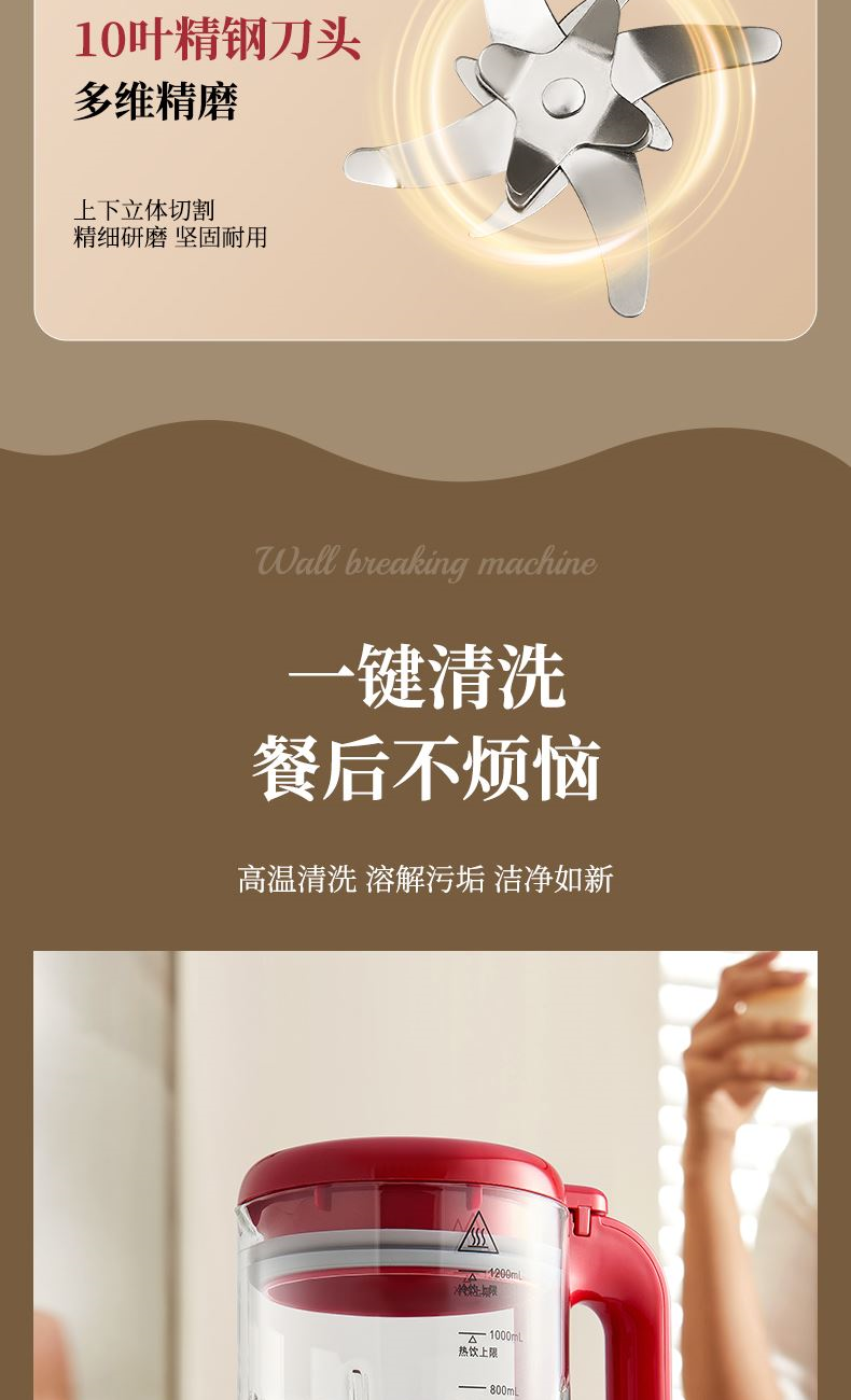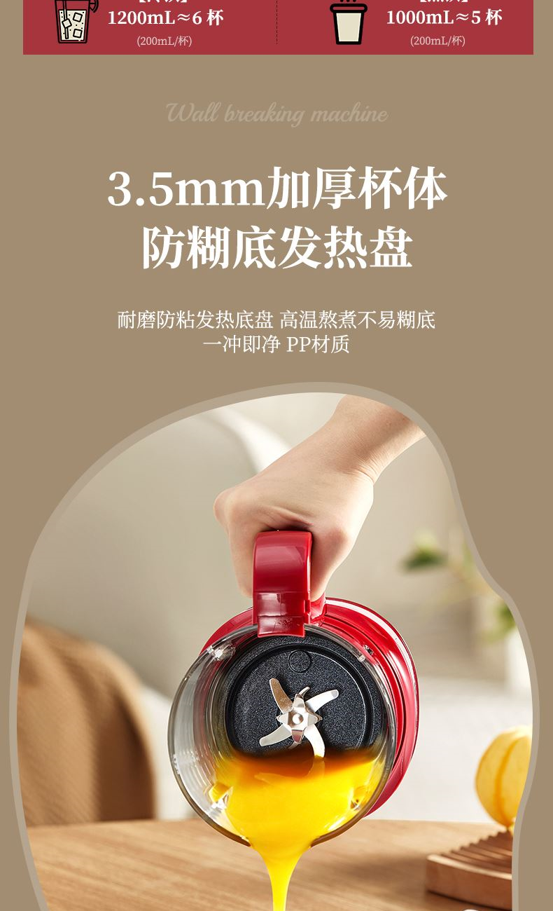 5. 3.5mm加厚杯體,防糊底發(fā)熱盤,食品級PP材質(zhì)。. 一鍵清洗,快速便捷。