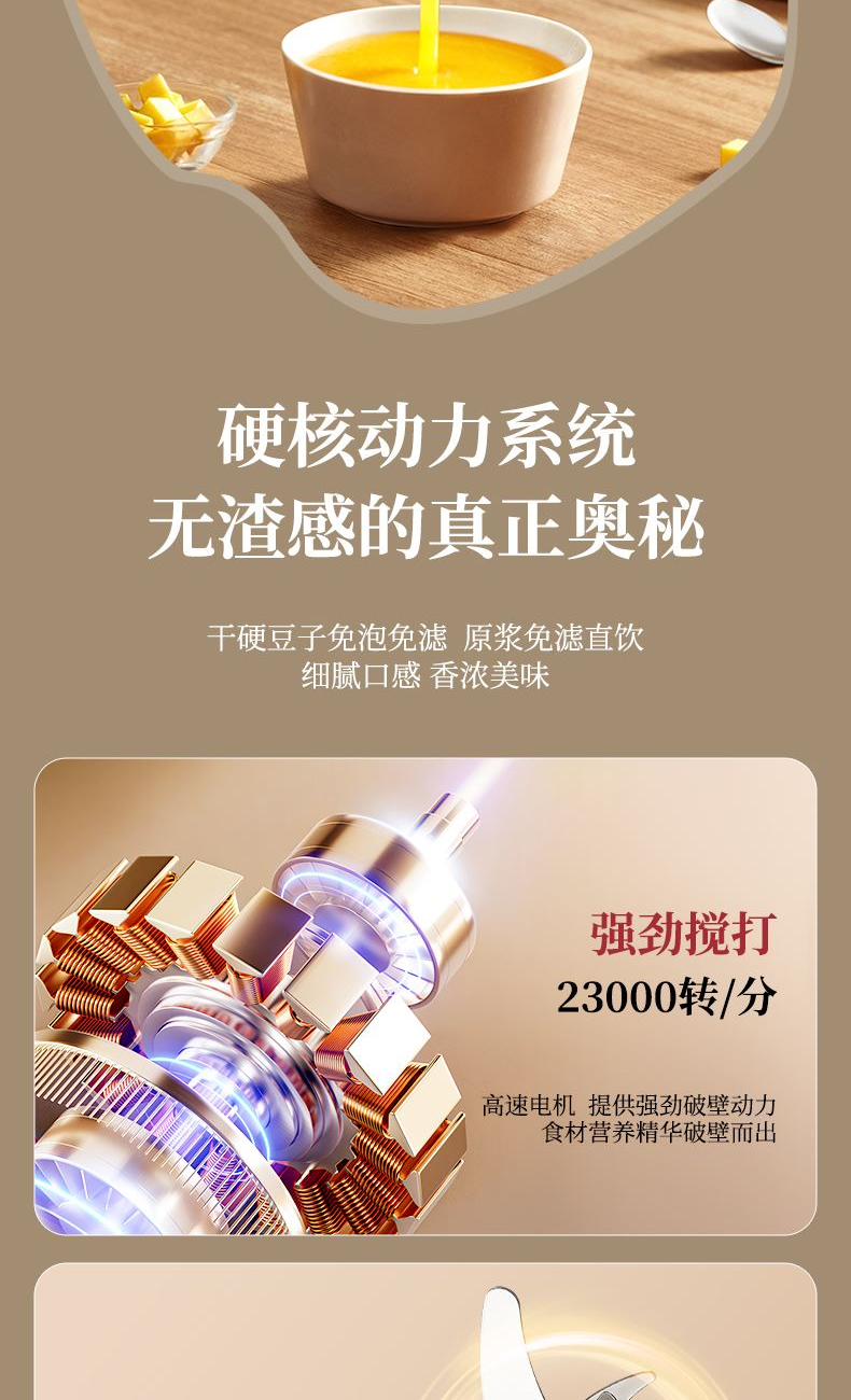 3. 干豆直打,免泡免濾,便捷香濃無渣。