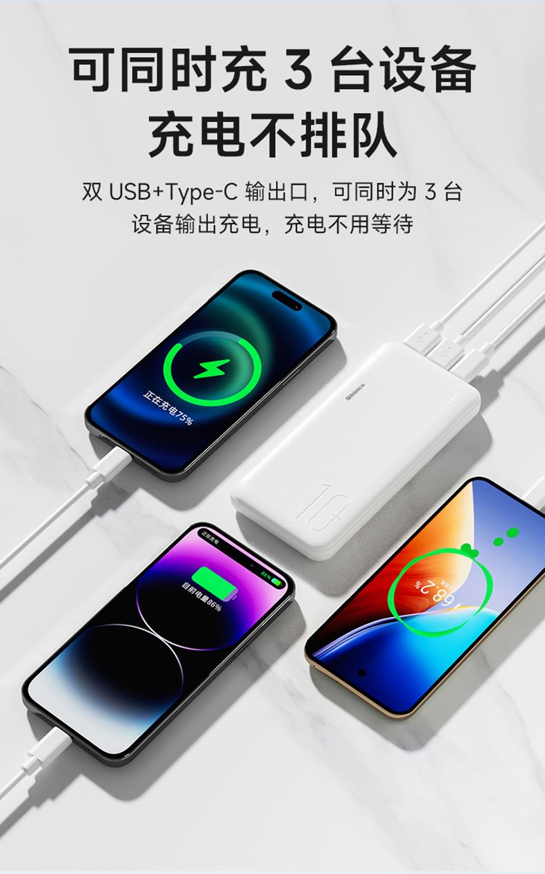 Micro/Type-C雙輸入、蓄電多選擇兩種主流充電輸入方式,雙向快充,充電無需等待