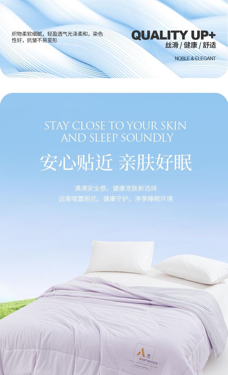 1.肌膚安心之選!云紗A類被,面料與填充均達(dá)A類安全標(biāo)準(zhǔn),觸感如云輕柔,帶來無菌無味的安心睡眠環(huán)境。