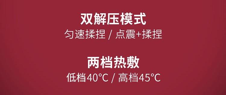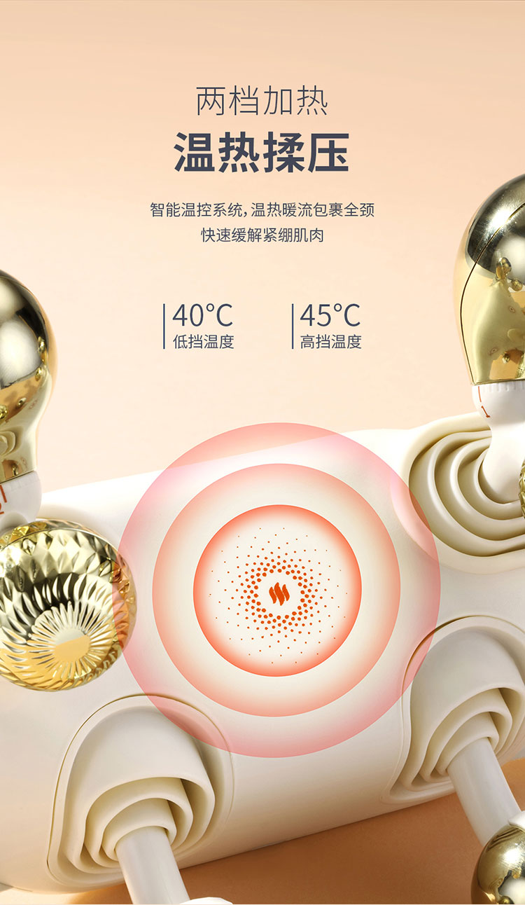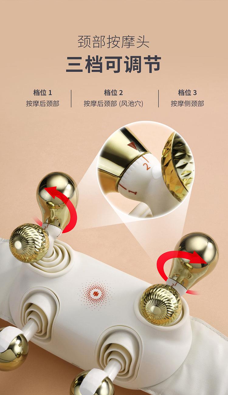 產(chǎn)品規(guī)格: 1、工作電壓:7.4V 2、工作功率:18W 3、電池容量:2000mAh 4、皮料材質(zhì):PU皮 5、工作時(shí)長(zhǎng):10min 6、產(chǎn)品顏色:米白色 產(chǎn)品特點(diǎn): 1、仿大師按摩手法,還原人手揉捏,剛?cè)岵?jì),快速排酸; 2、頸部按摩頭,三檔可調(diào)節(jié),緩解頸椎不適; 3、兩檔加熱,智能控溫,緩解緊繃肌肉; 4、兩檔按摩模式,雙解壓,每一種皆是享受; 5、10min智能定時(shí),穴位揉捏,恰到好處; 6、兩種佩戴方式,解放雙手。
