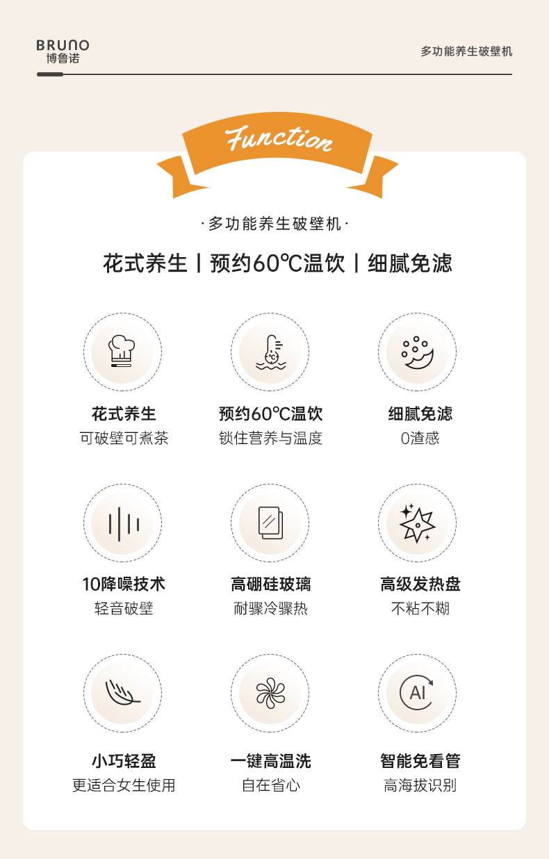 BRUNO靜音多功能破壁機茶漏款BZK-PBJ03-XP01