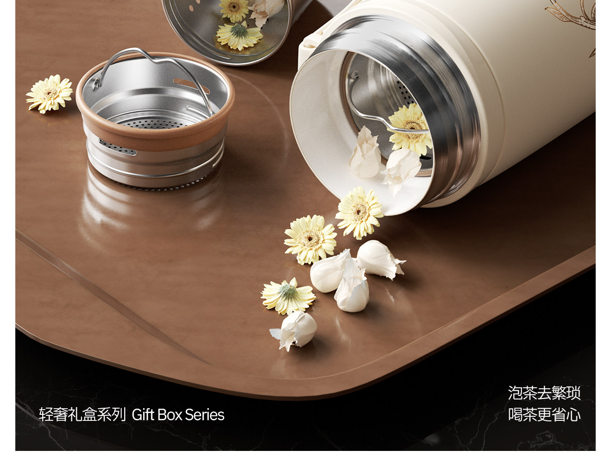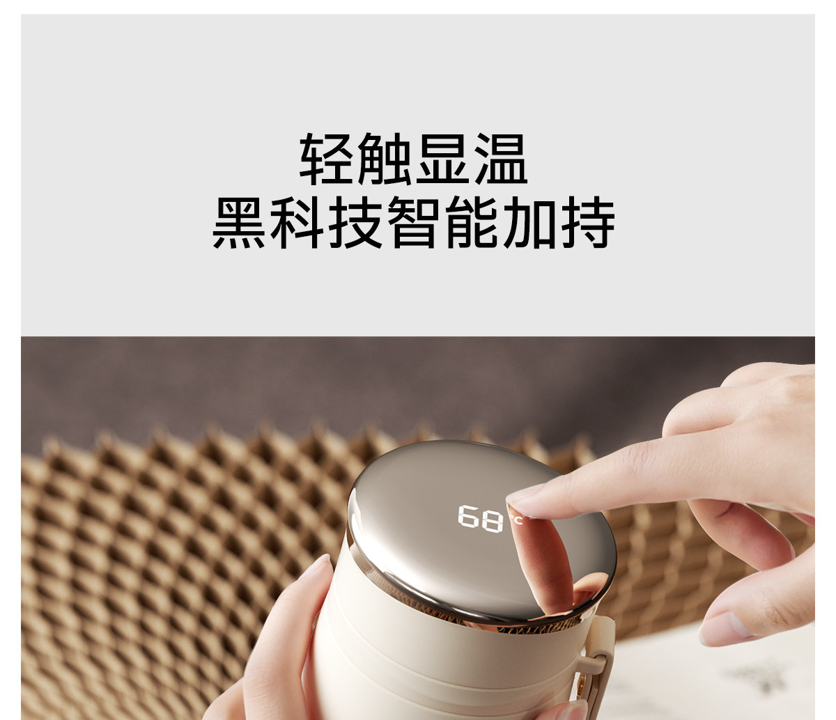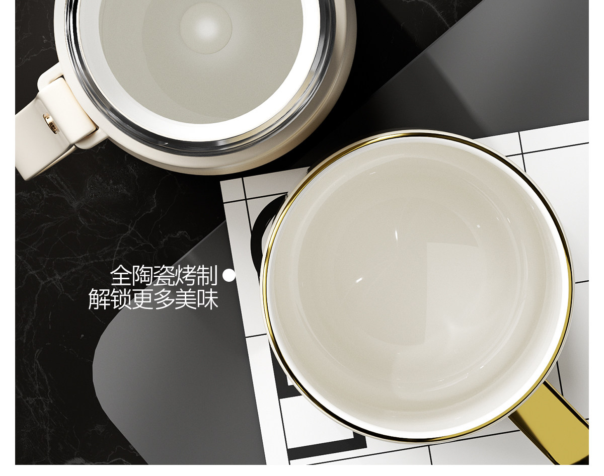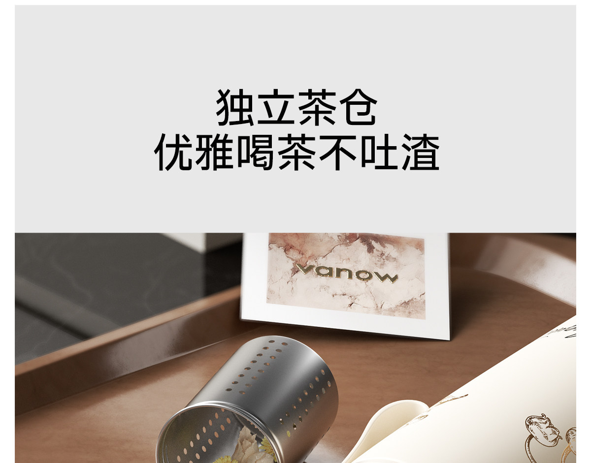 型號:VO-LL46CT 顏色:鈴蘭白 容量:460ml+350ml 尺寸:190*72mm/103*86mm 材質(zhì):316不銹鋼內(nèi)膽,陶瓷馬克杯,硅橡膠 產(chǎn)品賣點:1.知溫度識冷暖,心坎里的保溫杯 2.輕觸顯溫,黑科技智能加持 3.獨立茶倉,優(yōu)雅喝茶不吐渣 4.鎏金馬克杯,美觀且握感舒適