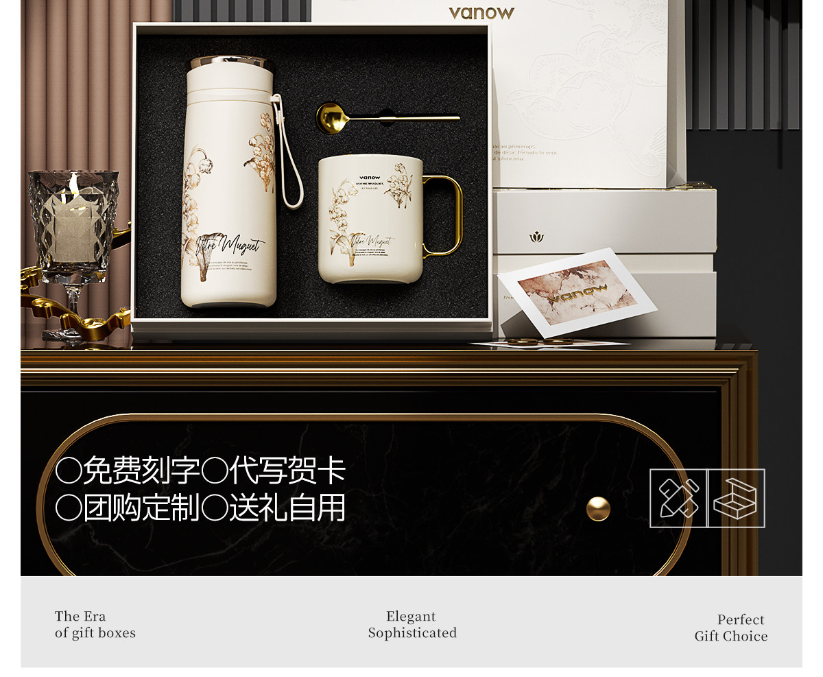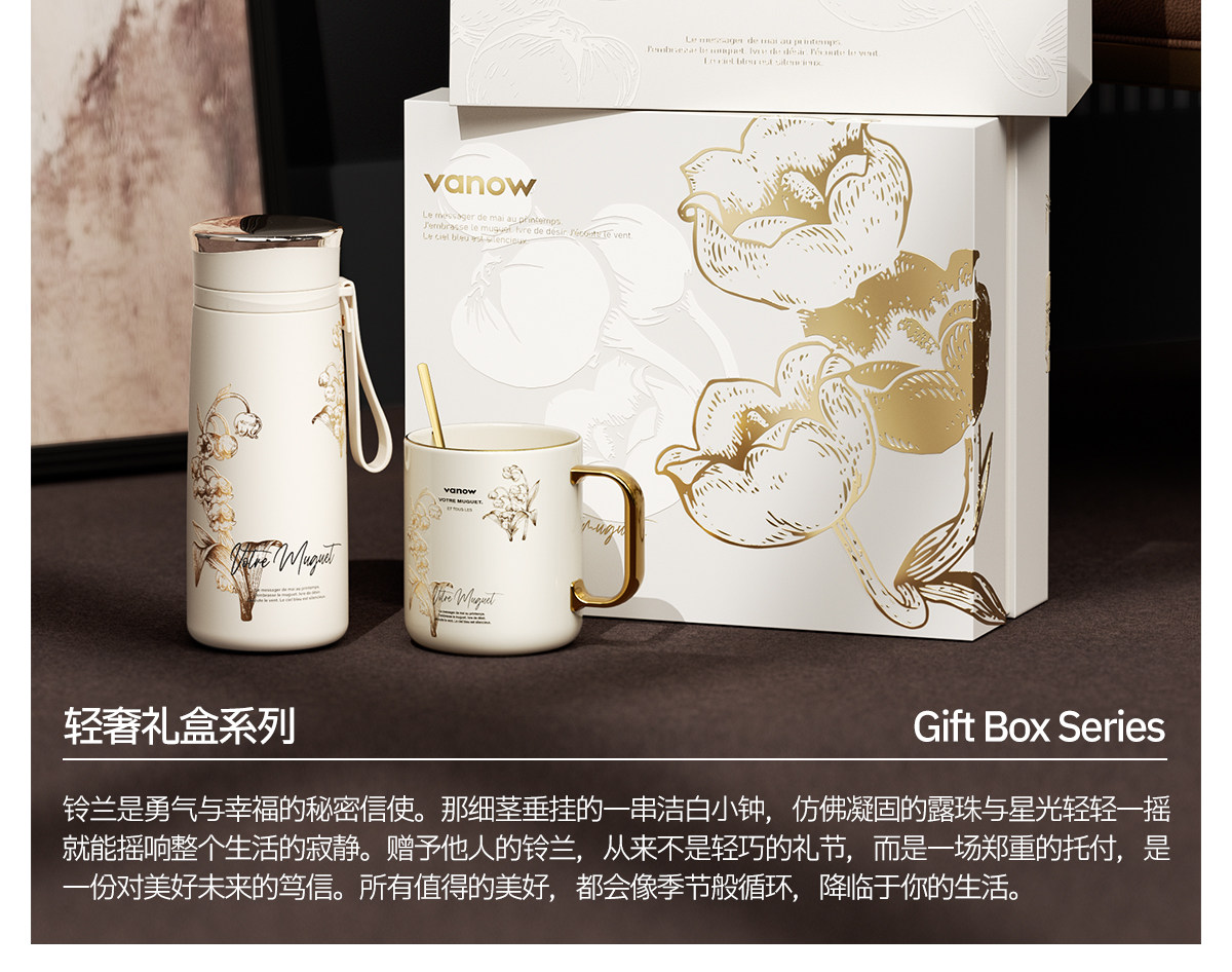 Vanow鈴蘭鏡面保溫杯陶瓷杯套裝VO-LL46CT 禮品已成功加入PPT!