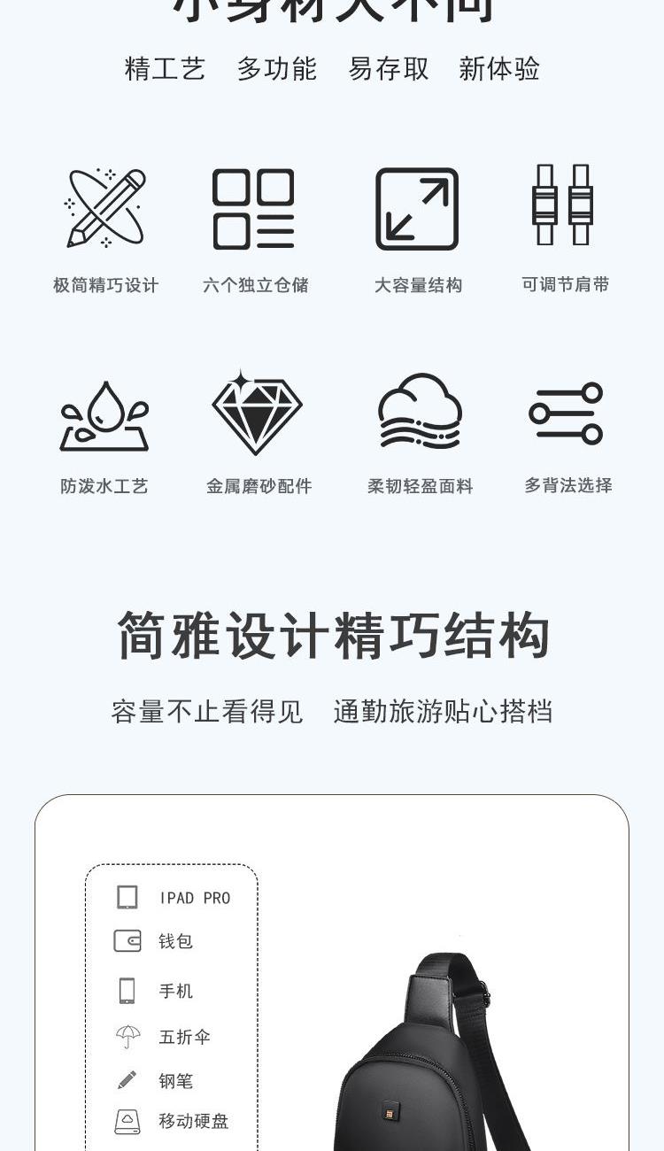 TYMON(泰夢(mèng))時(shí)光行囊潮流胸包斜挎包單肩包 禮品已成功加入PPT!