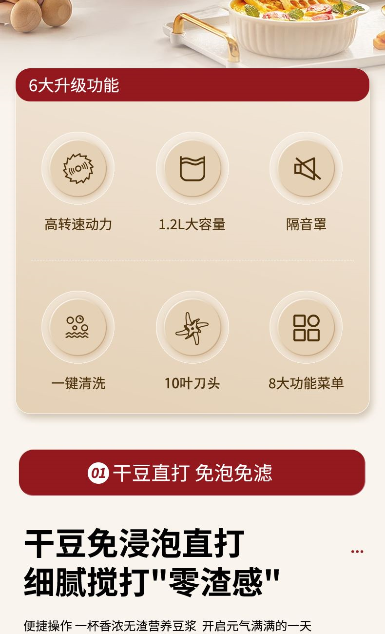 3. 干豆直打,免泡免濾,便捷香濃無渣。