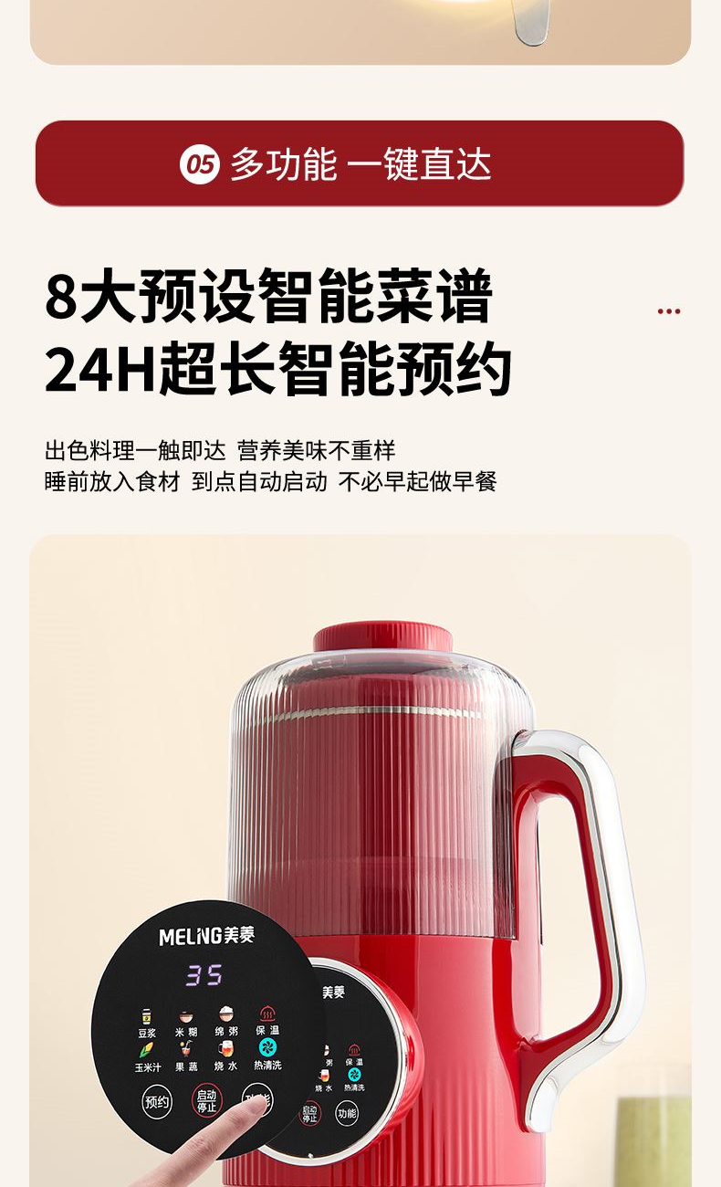2. 24H小時超長智能預(yù)約. 8大預(yù)設(shè)智能菜譜,營養(yǎng)美味不重樣。