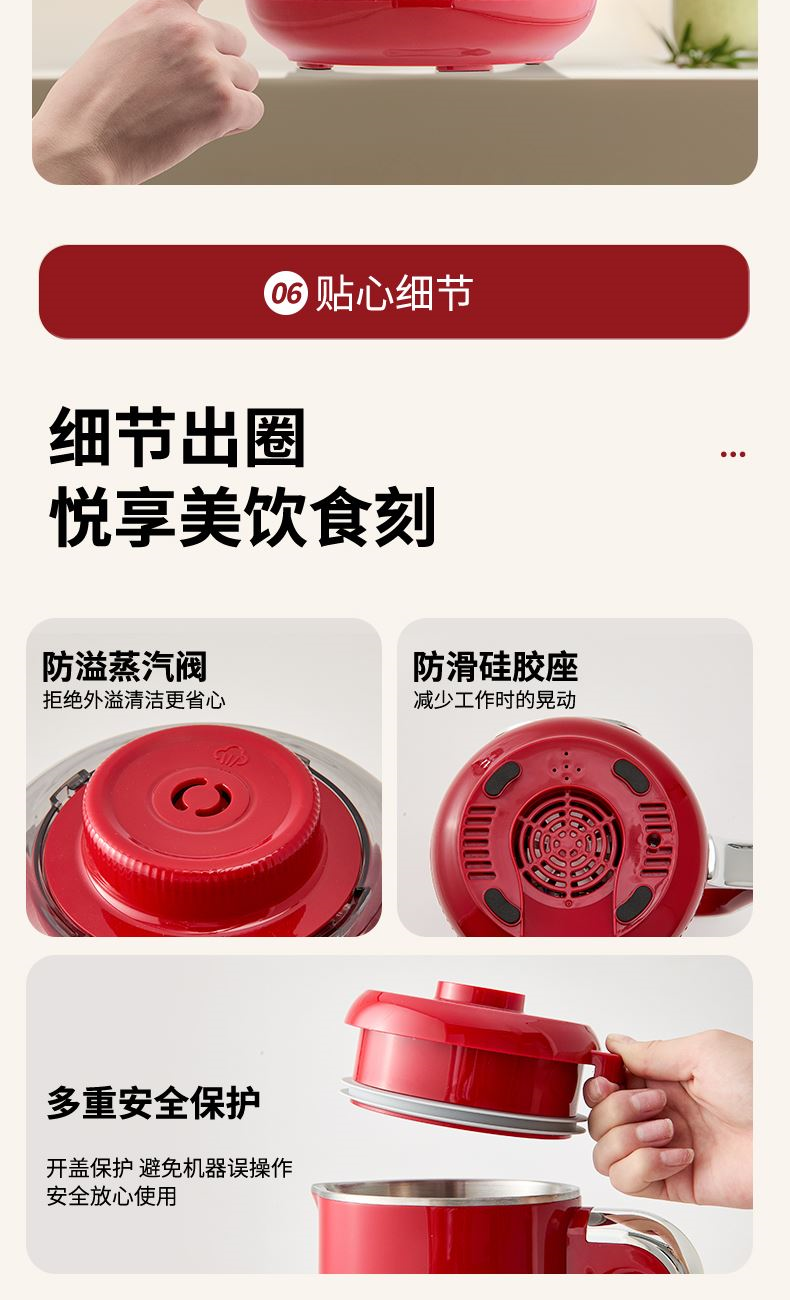 6. 一鍵清洗,快速便捷。開蓋保護,避免機器誤操作,安全放心使用。
