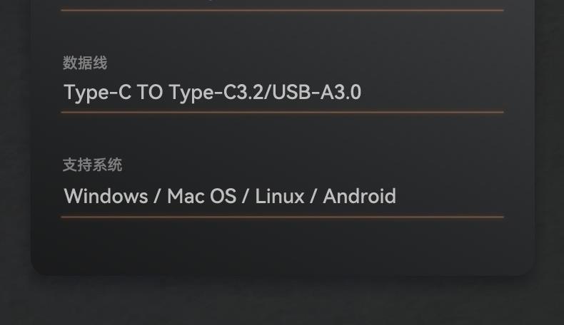 數(shù)據(jù)線:Type-C TO Type-C3.2/USB-A3.0(內(nèi)附數(shù)據(jù)線)