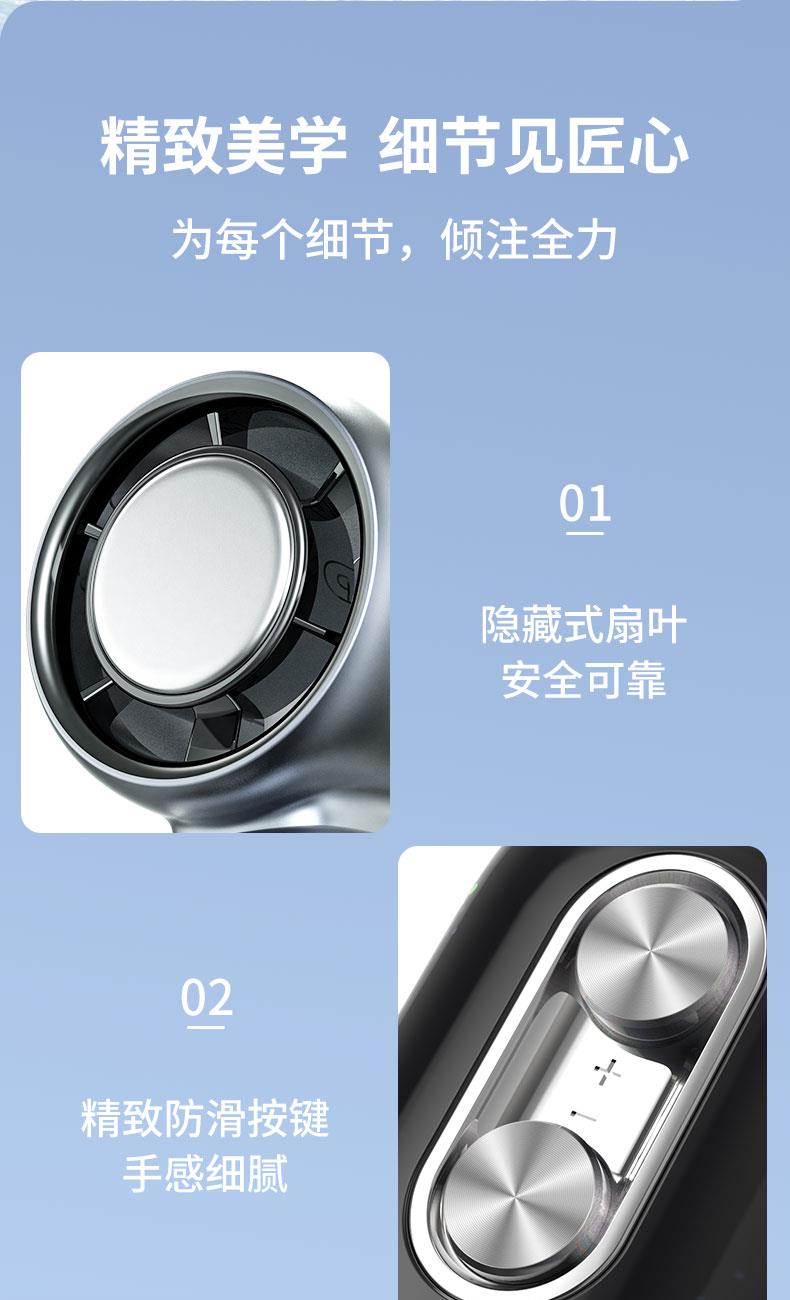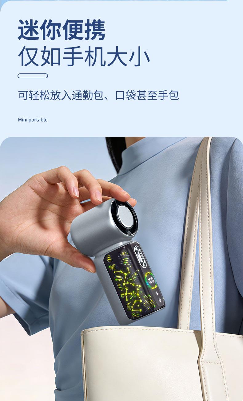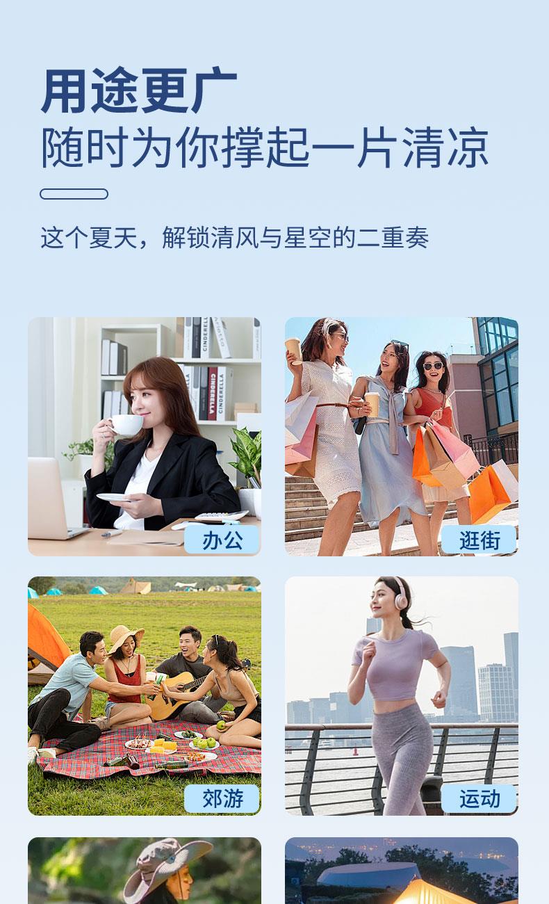 小巧隨身便攜:輕量化小巧機(jī)身,可放包、可口袋,折疊省空間,隨身帶用,清涼走到哪帶到哪