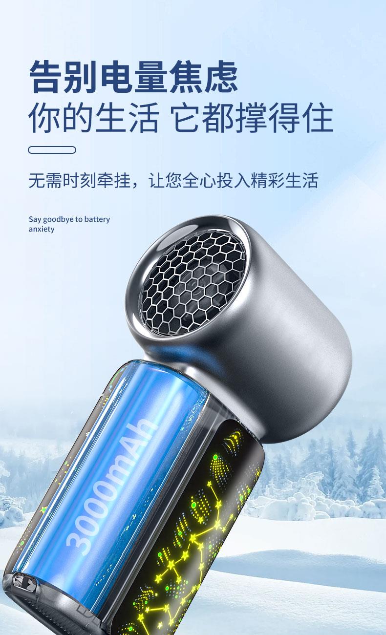 長續(xù)航不插電:大容量電池 + 快充,續(xù)航持久,擺脫電源線束縛,通勤、露營、辦公全天清涼不斷電。