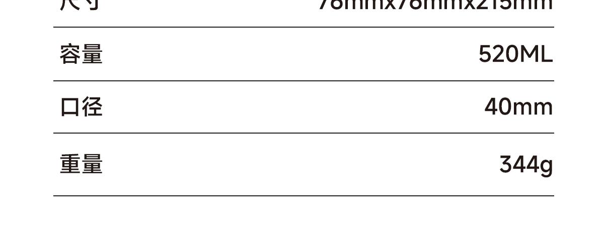 1、容量:520ml | 凈重:344g | 口徑:40mm 2、材質(zhì):316不銹鋼(內(nèi)膽)304不銹鋼(外殼) PP(杯蓋) 3、產(chǎn)品尺寸:76mm*76mm*215mm 4、彩盒尺寸:80mm*80mm*223mm 5、執(zhí)行標(biāo)準(zhǔn):GB/T 29606-2013《不銹鋼真空杯》