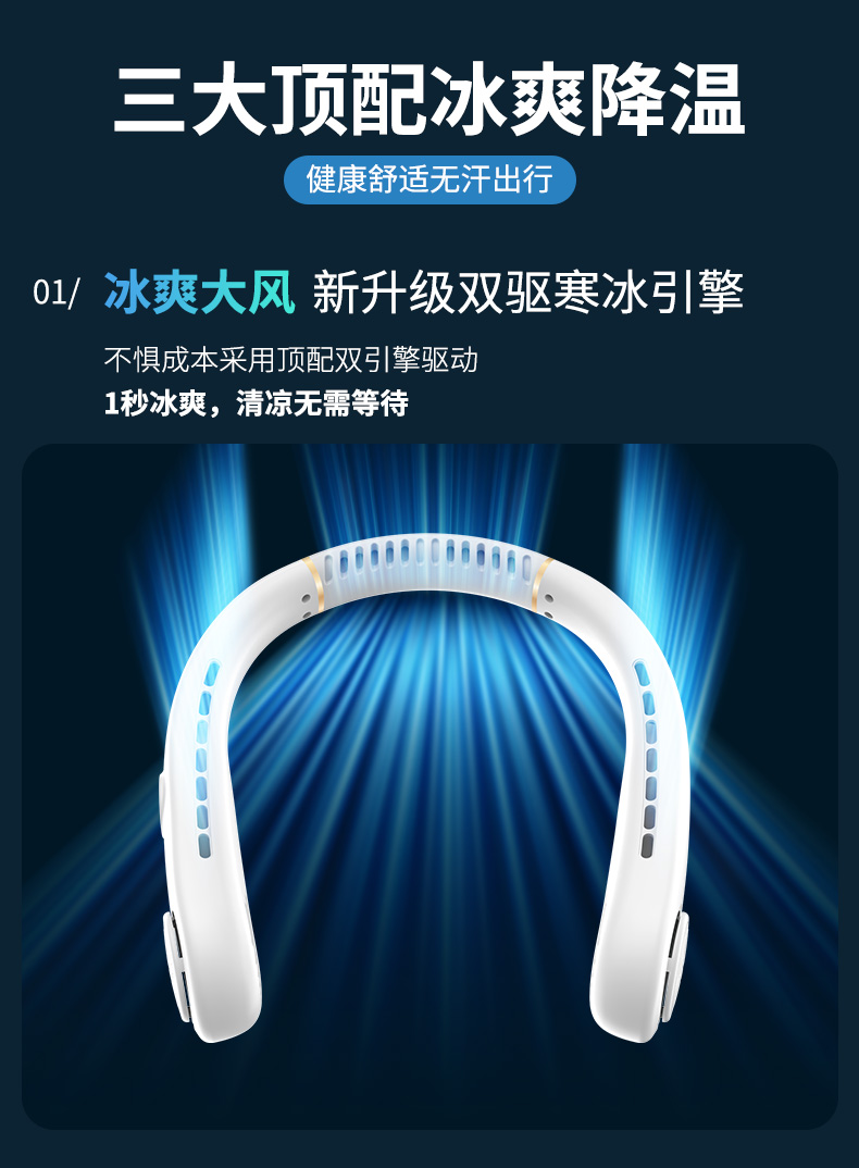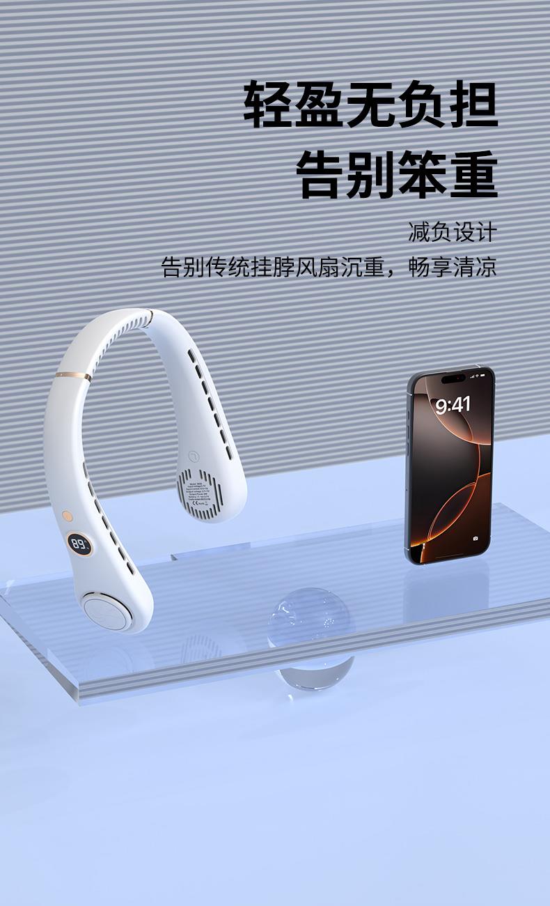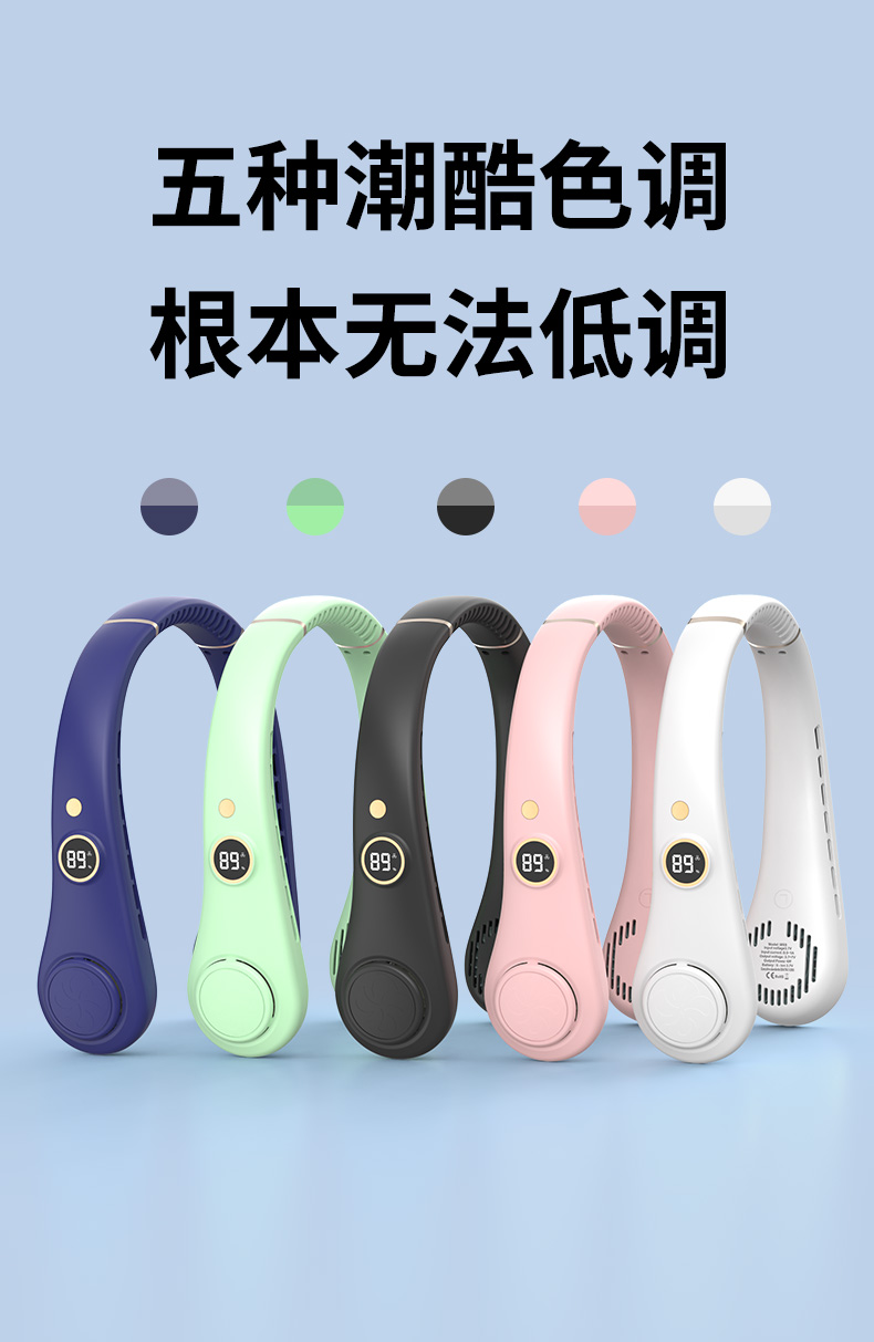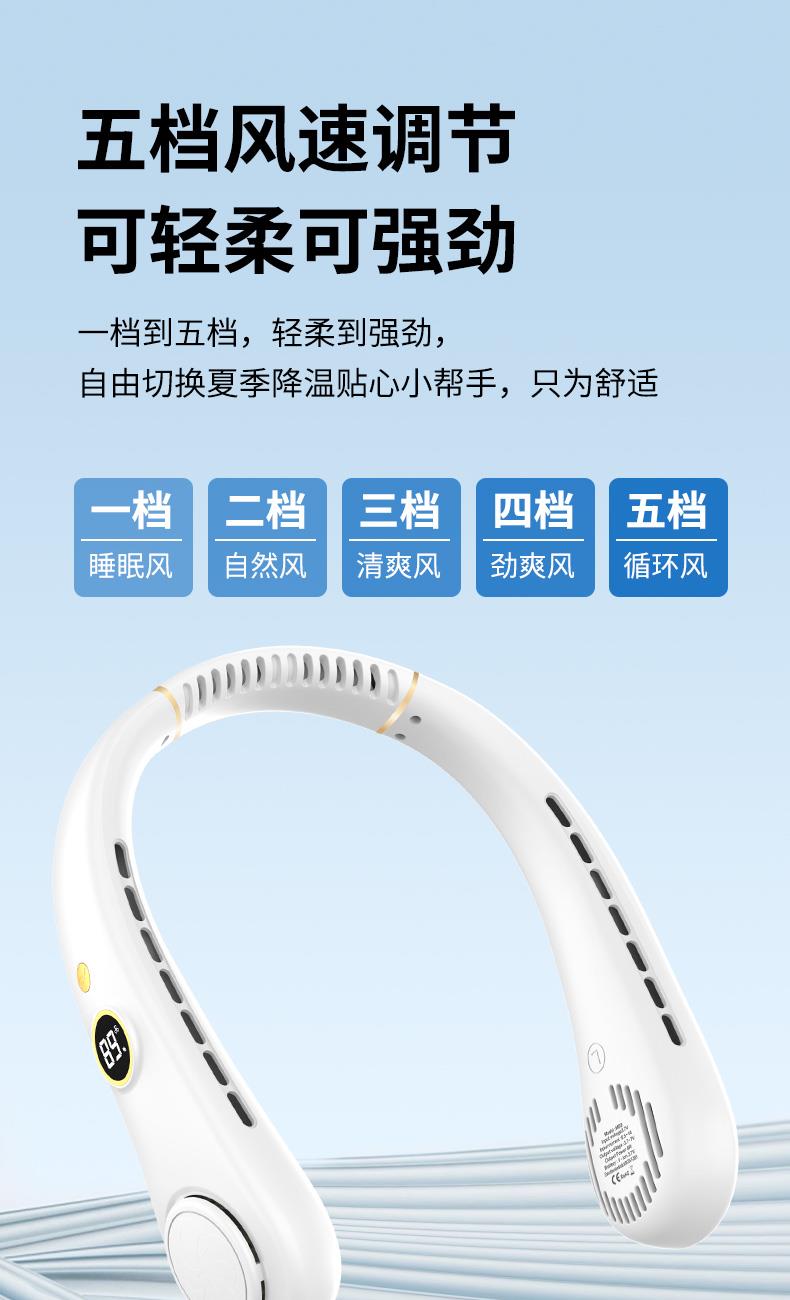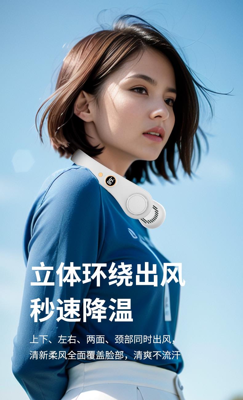 產(chǎn)品材料:環(huán)保ABS+硅膠 馬達(dá):有刷靜音(雙馬達(dá)) 主板:雙層保護(hù)(過充過放) 輸入:DC5V 轉(zhuǎn)速:8000次/1分鐘 電池:18650 機(jī)子重量:220G 輸出:4W 粉色深藍(lán)色綠色 秒速降溫 + 環(huán)繞送風(fēng):開機(jī)即享澎湃涼意,氣流集中,環(huán)繞式清涼如隨身空調(diào) 智能溫控調(diào)風(fēng):實(shí)時(shí)感應(yīng)環(huán)境與體表溫度,自動(dòng)調(diào)節(jié)風(fēng)速,保持舒適體感 5 檔風(fēng)速:柔風(fēng) — 勁風(fēng)全覆蓋,辦公、通勤、運(yùn)動(dòng)、高溫場(chǎng)景都適配 超靜音低噪:靜音電機(jī) + 消聲風(fēng)道,低至 25 分貝,工作休息不打擾 親膚舒適掛脖:柔性軟膠貼合頸部,可調(diào)節(jié)角度,久戴無壓迫感 長(zhǎng)續(xù)航不斷電:新能源電芯,一檔續(xù)航 24 小時(shí),續(xù)航 8 小時(shí) + 無葉設(shè)計(jì)更安全:送風(fēng)均勻,不攪頭發(fā),使用更放心
