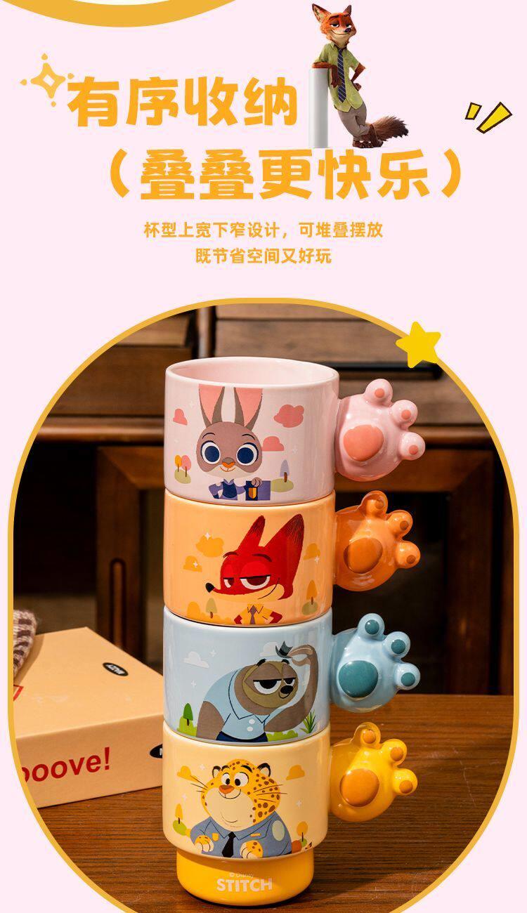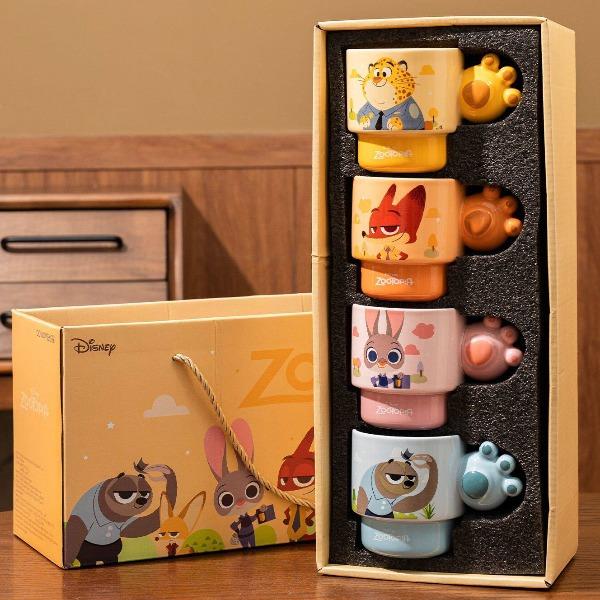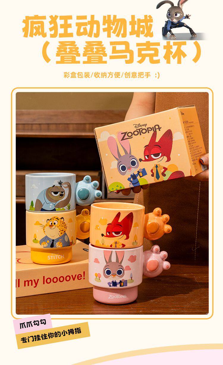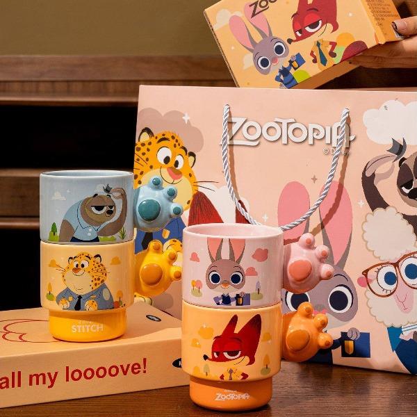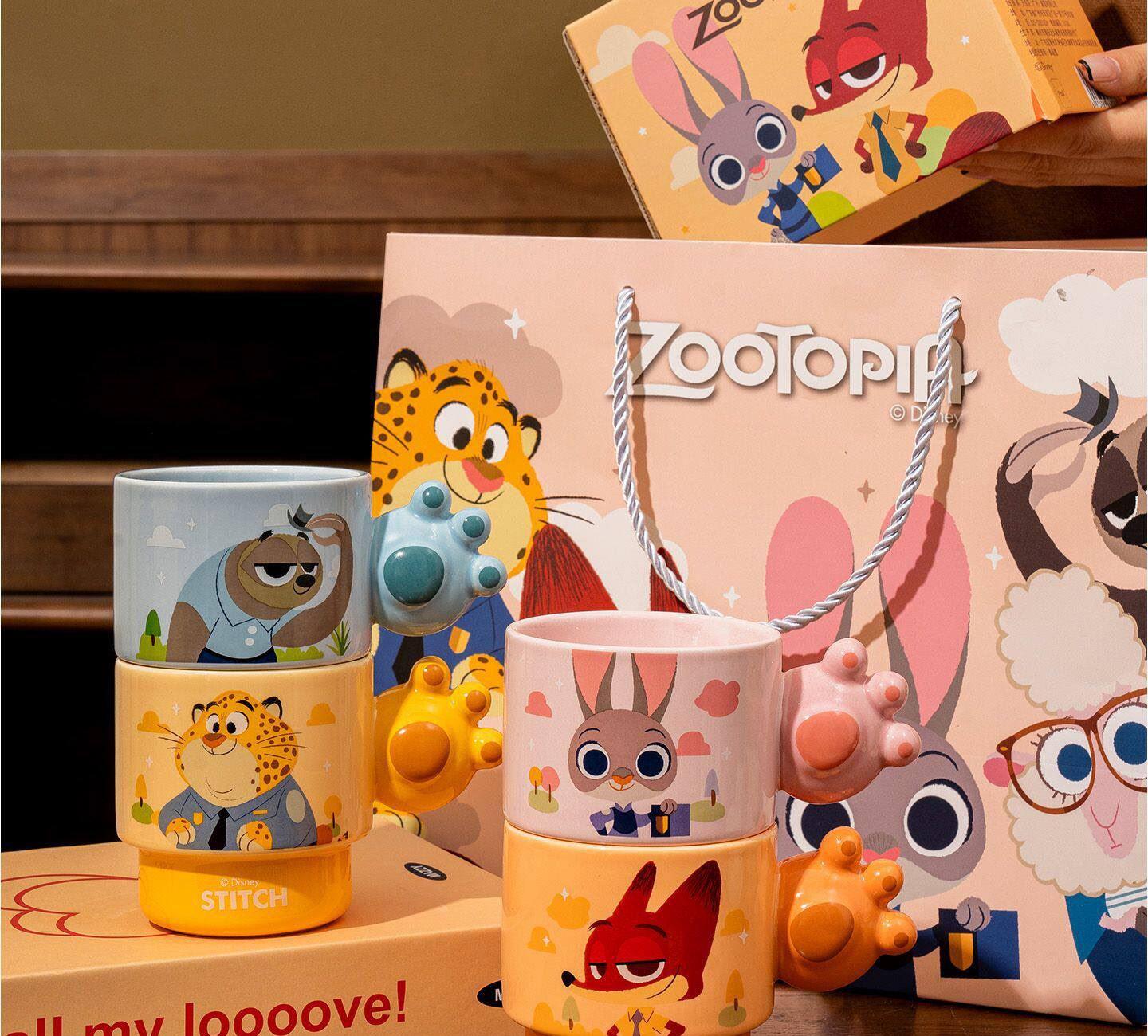 瘋狂動(dòng)物城陶瓷馬克杯咖啡疊疊杯、握趣杯4個(gè)【禮盒裝】9936