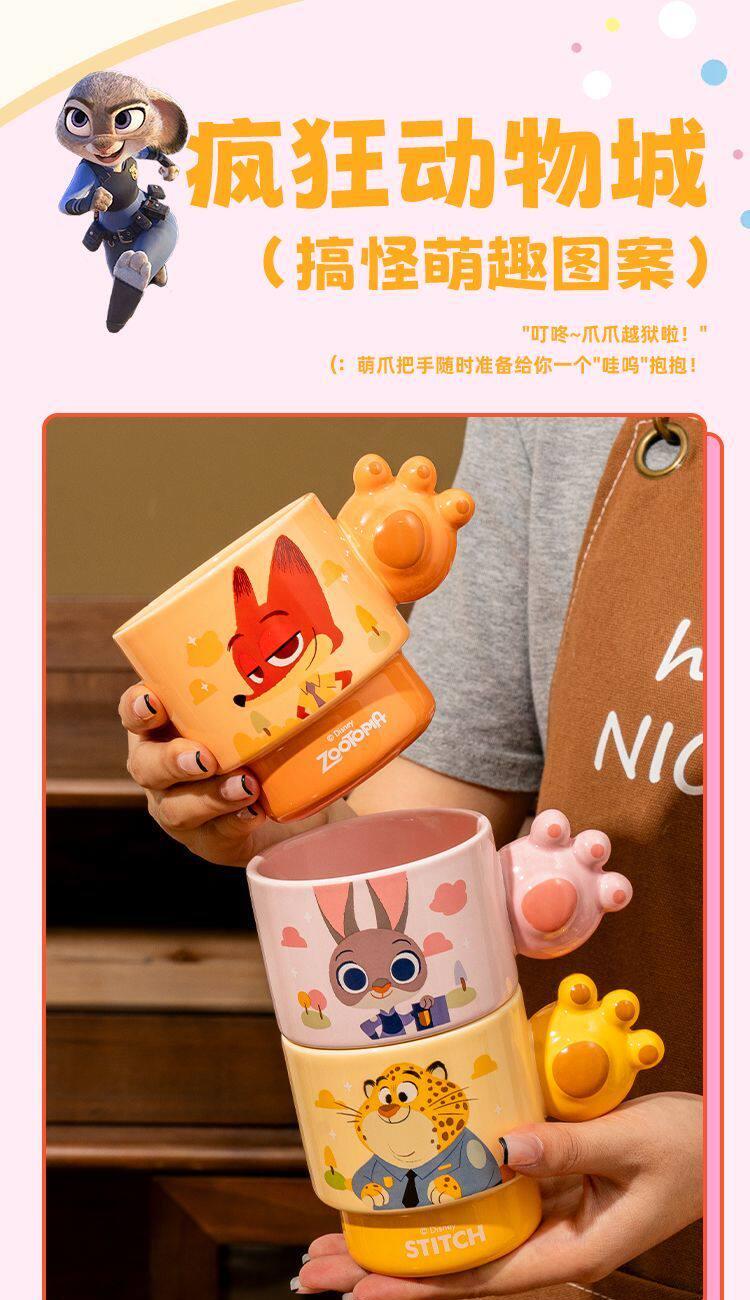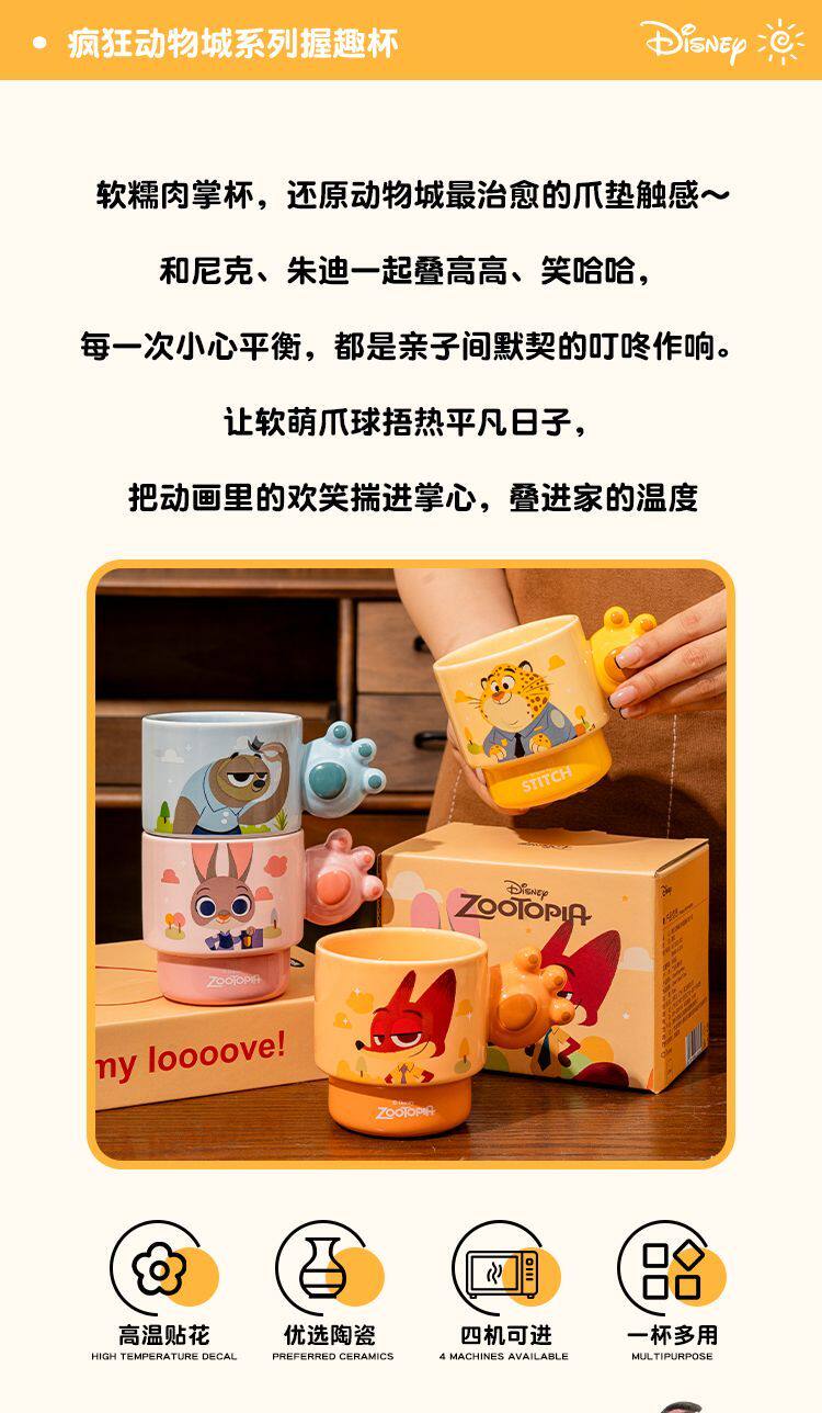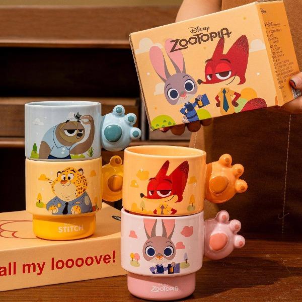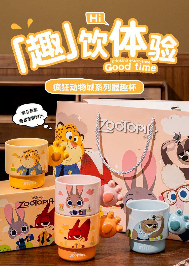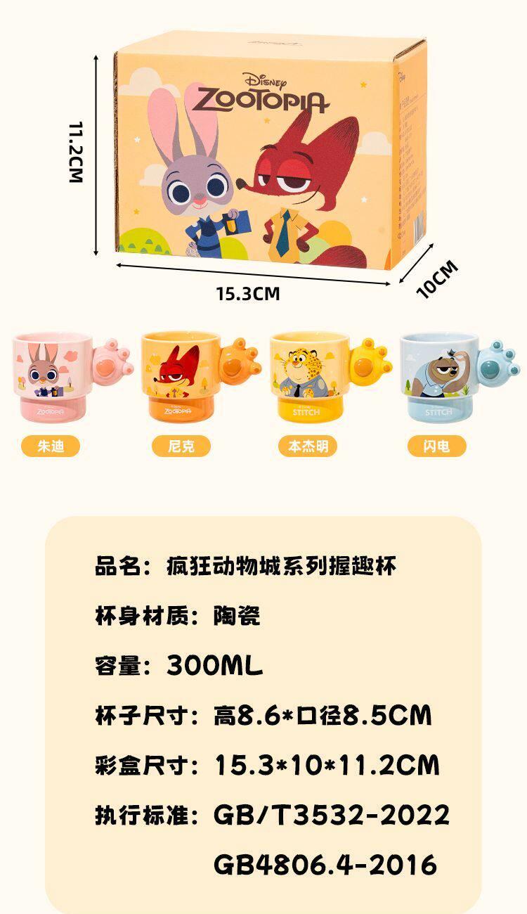瘋狂動(dòng)物城陶瓷馬克杯咖啡疊疊杯、握趣杯4個(gè)【禮盒裝】9936