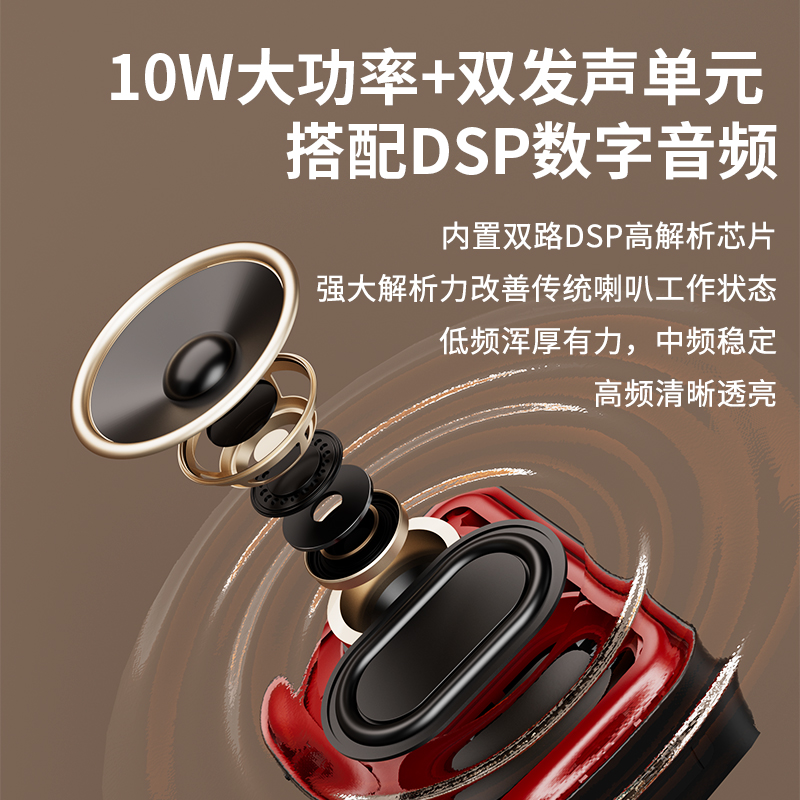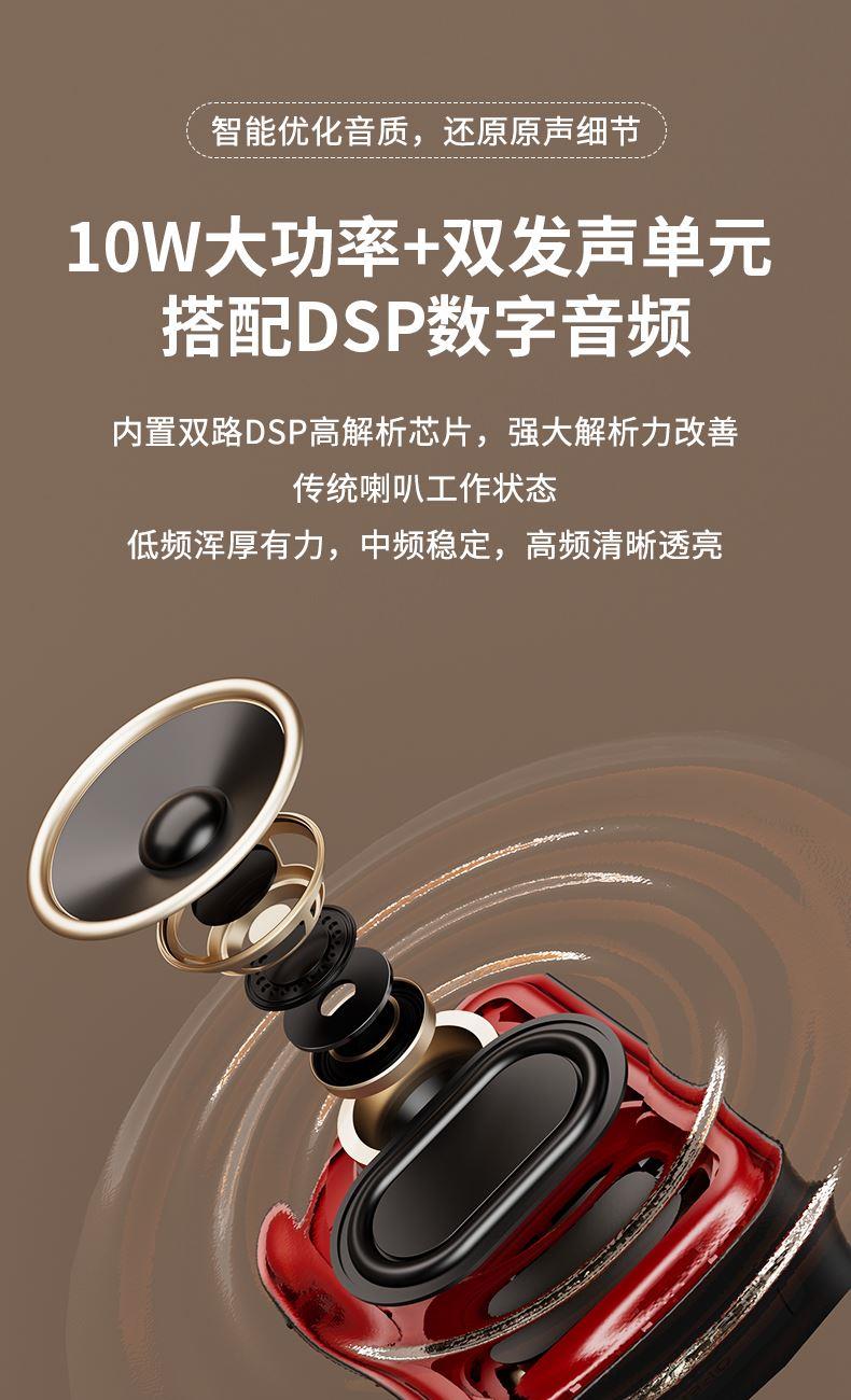 ? ,雙發(fā)聲單元 + 聲學(xué) DSP,低音下潛深,高音不刺耳,打造影院級立體聲。