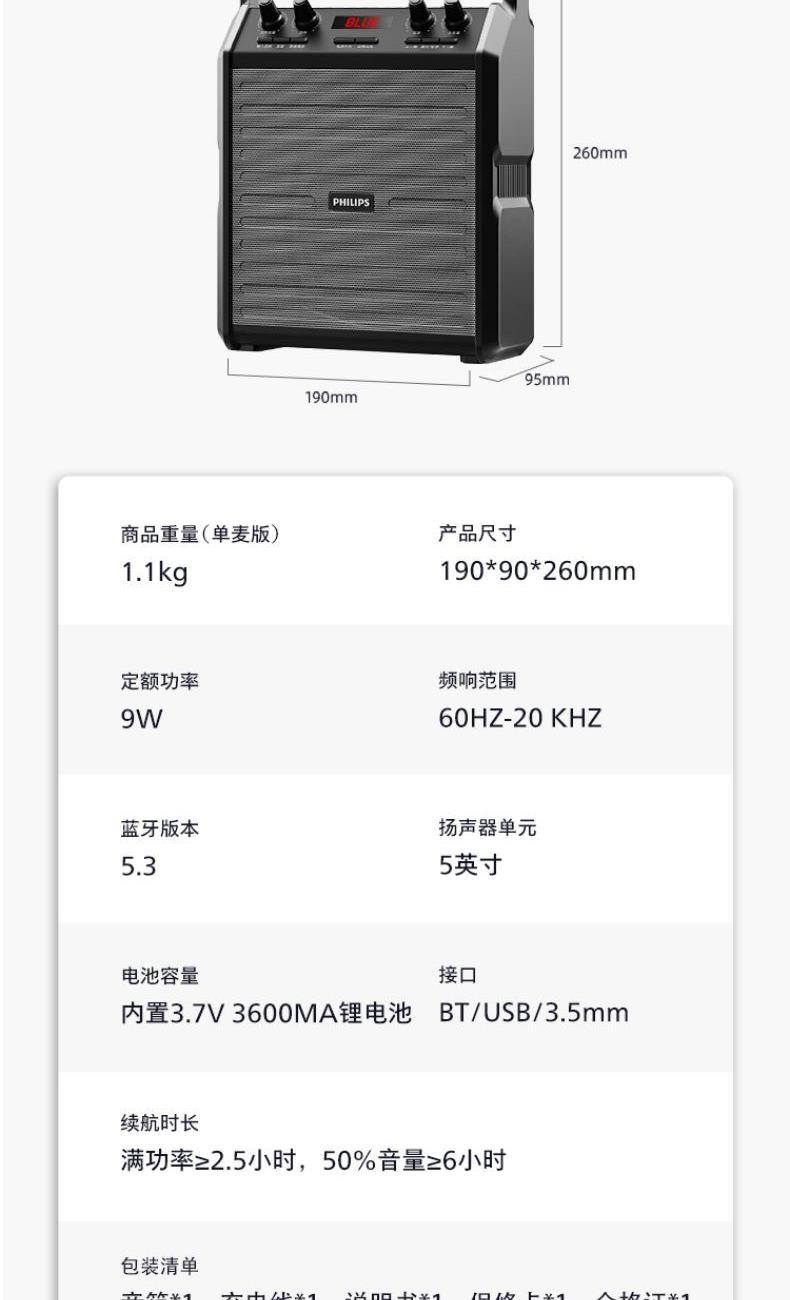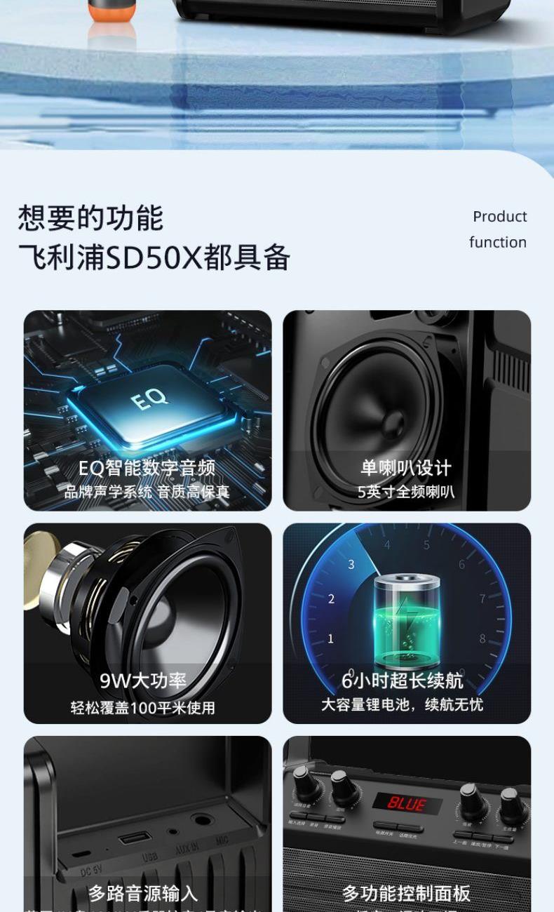 飛利浦/Philips戶外便攜式藍(lán)牙音箱SD50X手持版