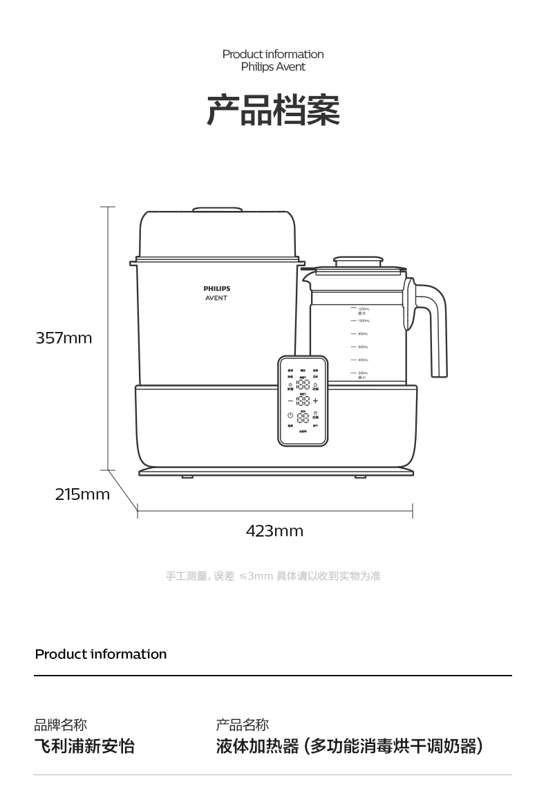 飛利浦新安怡組合調(diào)奶器凈菌款(Y-TNQ2CS)