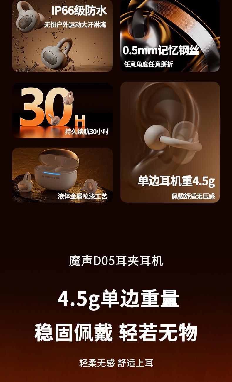 魔聲(MONSTER)耳夾式無線藍牙耳機D05