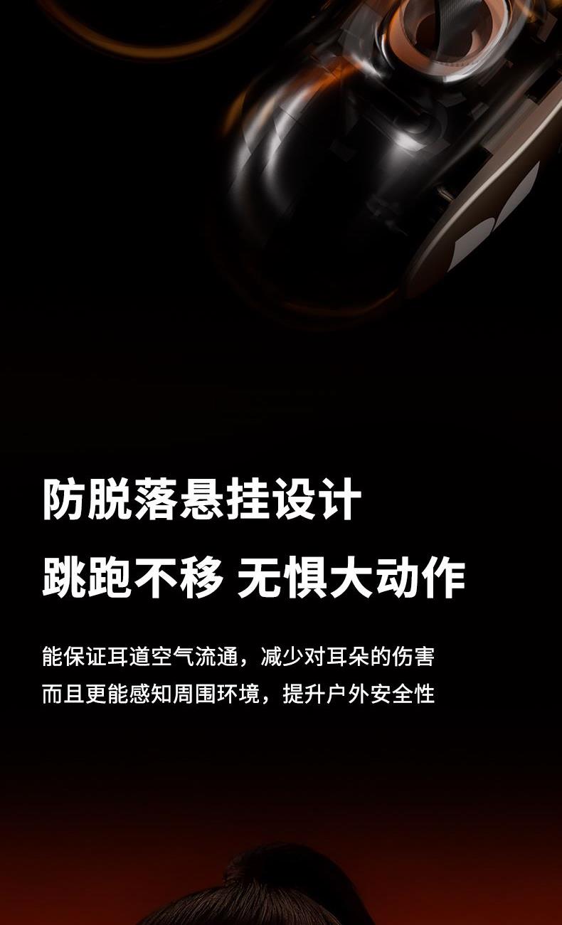 ? 夾耳式出音方式,能保證耳道空氣流通,減少對耳朵的傷害,而且更能感知周圍環(huán)境,提升戶外安全性
