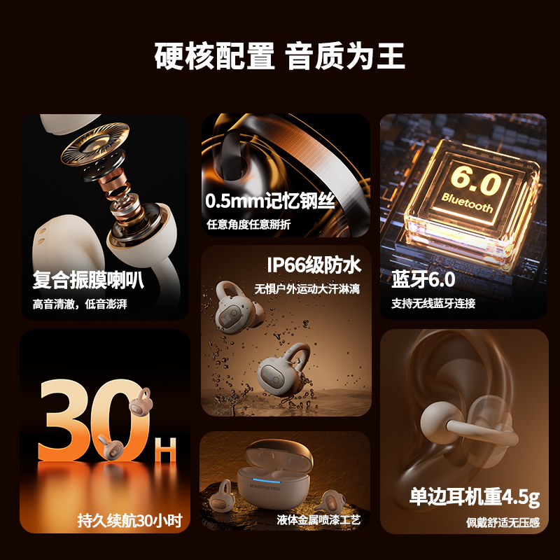 ? 采用新型聲音傳導(dǎo)算法,開放不漏音,媲美千元級別同類別耳機