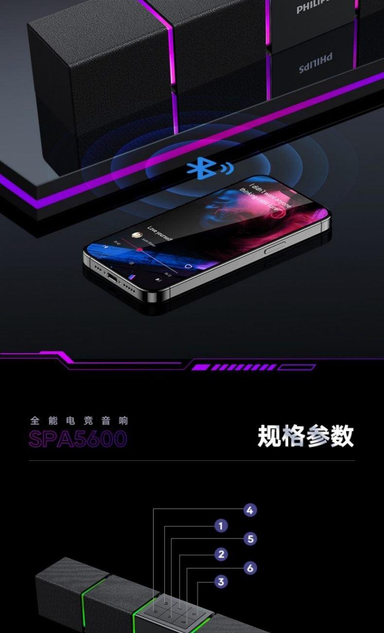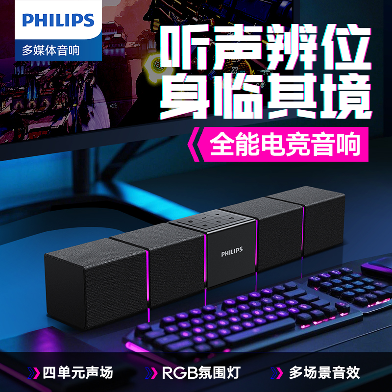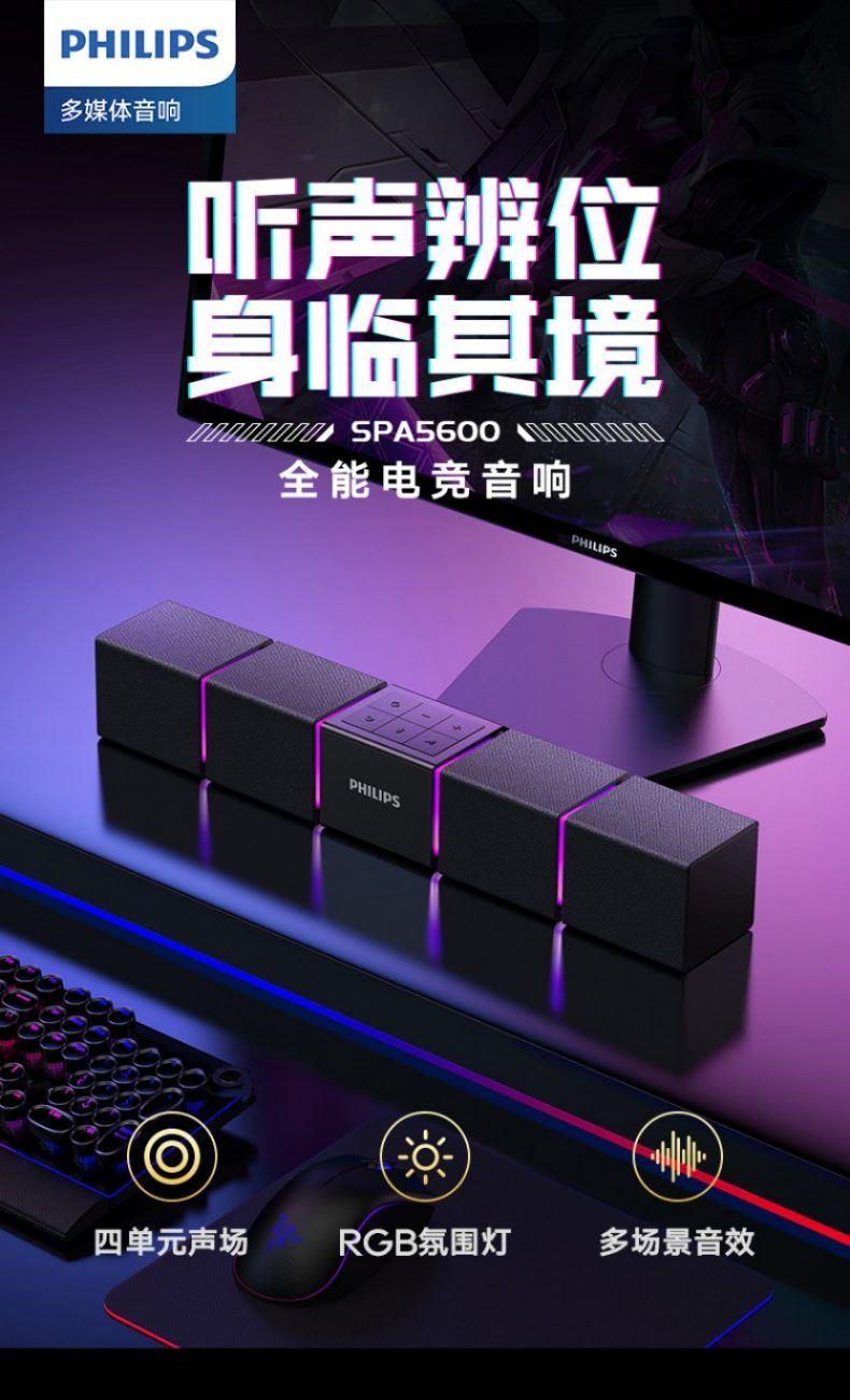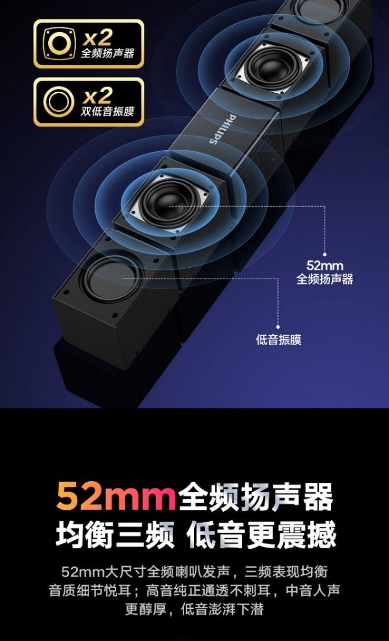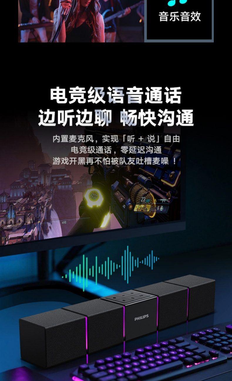 飛利浦桌面臺(tái)式長(zhǎng)條音箱內(nèi)置麥克風(fēng)SPA5600B