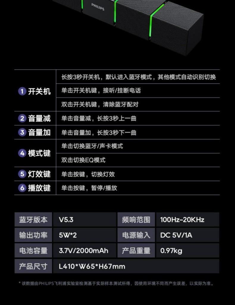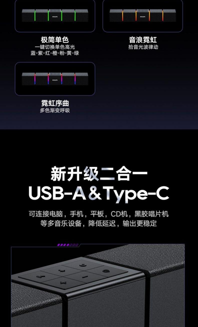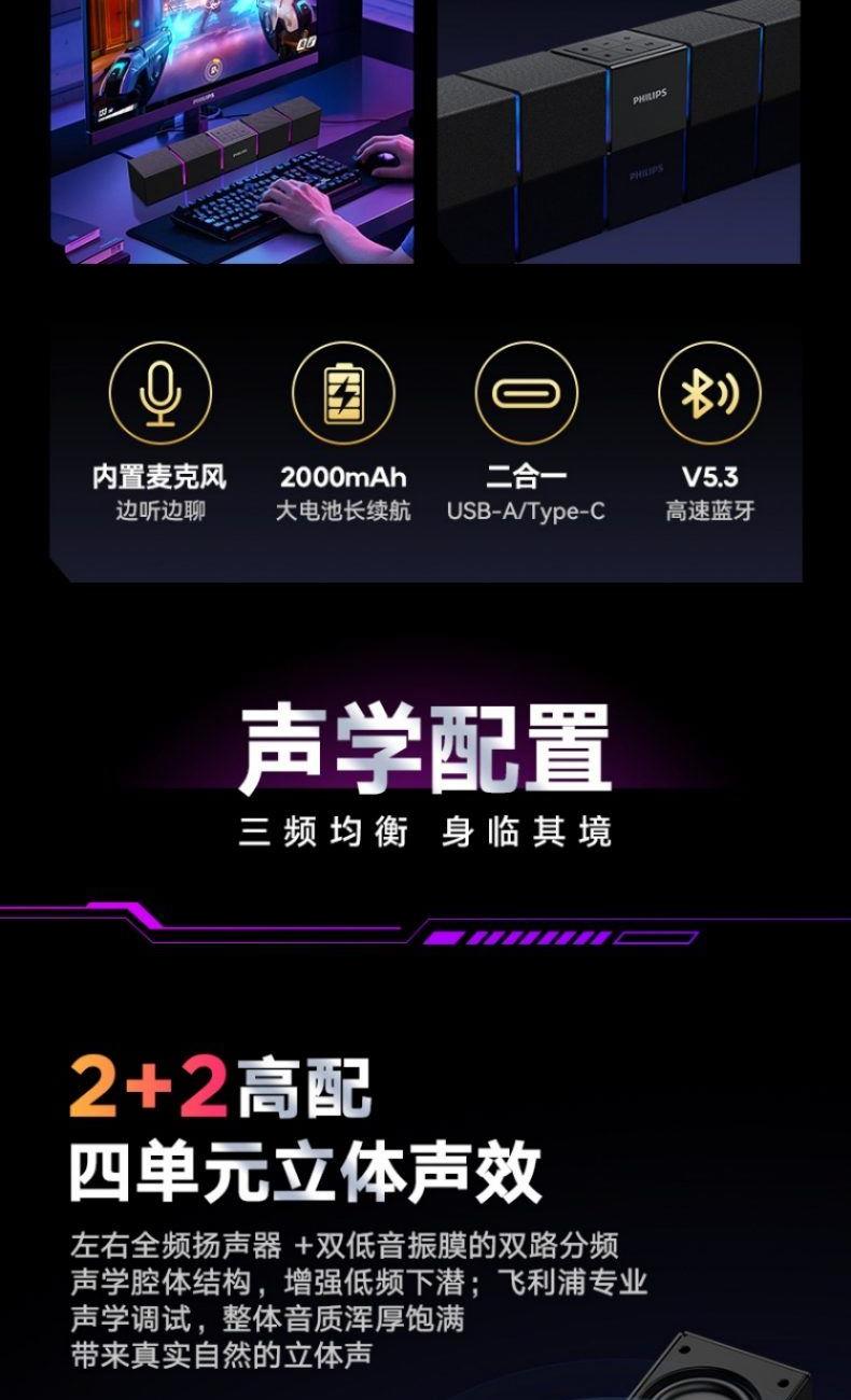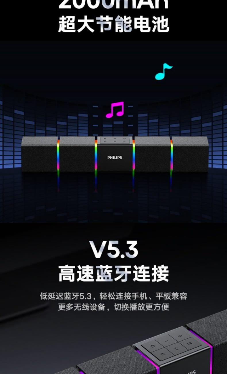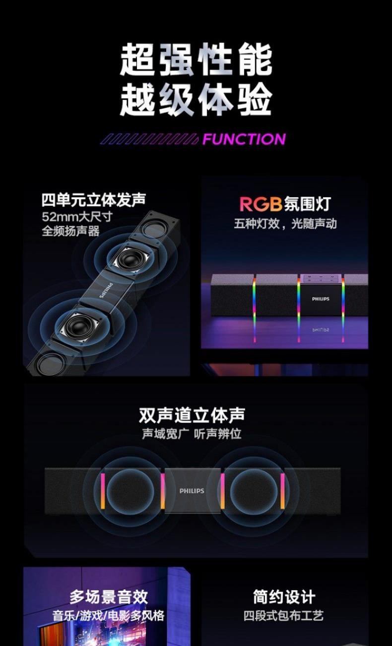 飛利浦桌面臺(tái)式長(zhǎng)條音箱內(nèi)置麥克風(fēng)SPA5600B