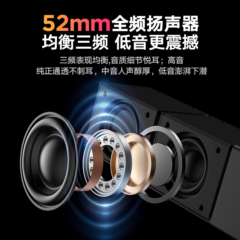 52mm全頻揚(yáng)聲器,均衡三頻,低音更震撼