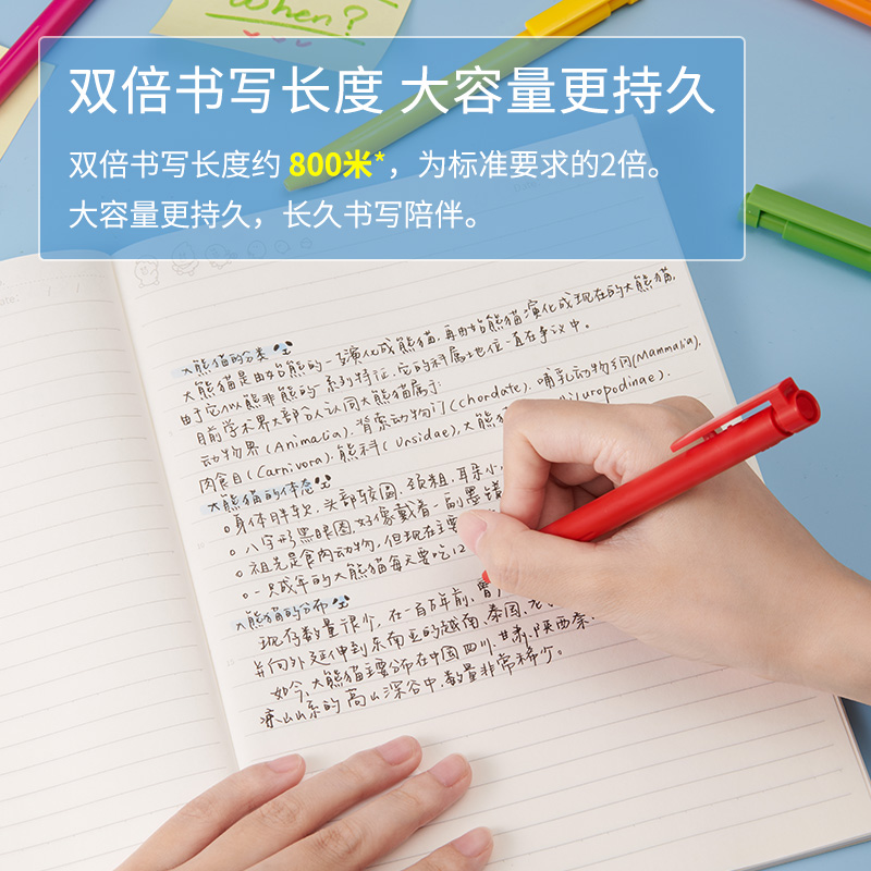 2、雙倍書寫長度約 800米,大容量墨水,書寫陪伴更持久。