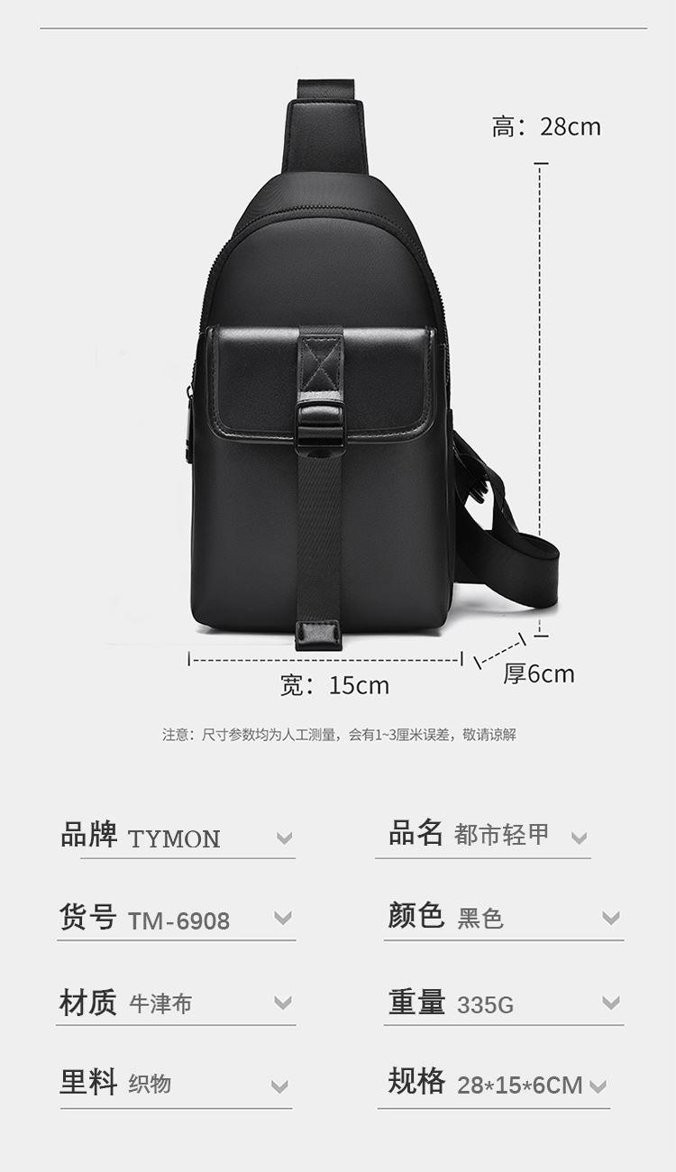 TYMON(泰夢)都市輕甲休閑胸包斜挎包單肩包 禮品已成功加入PPT!