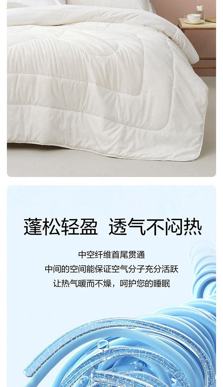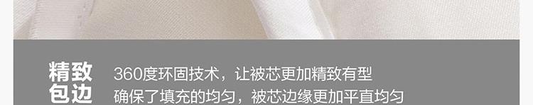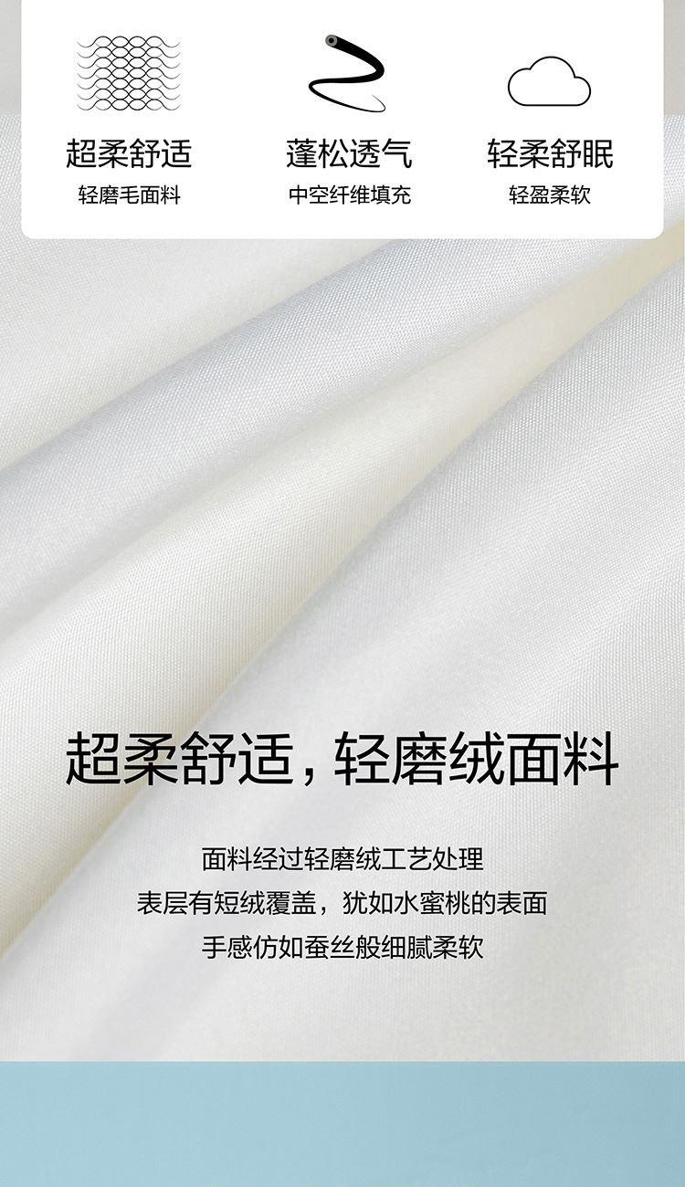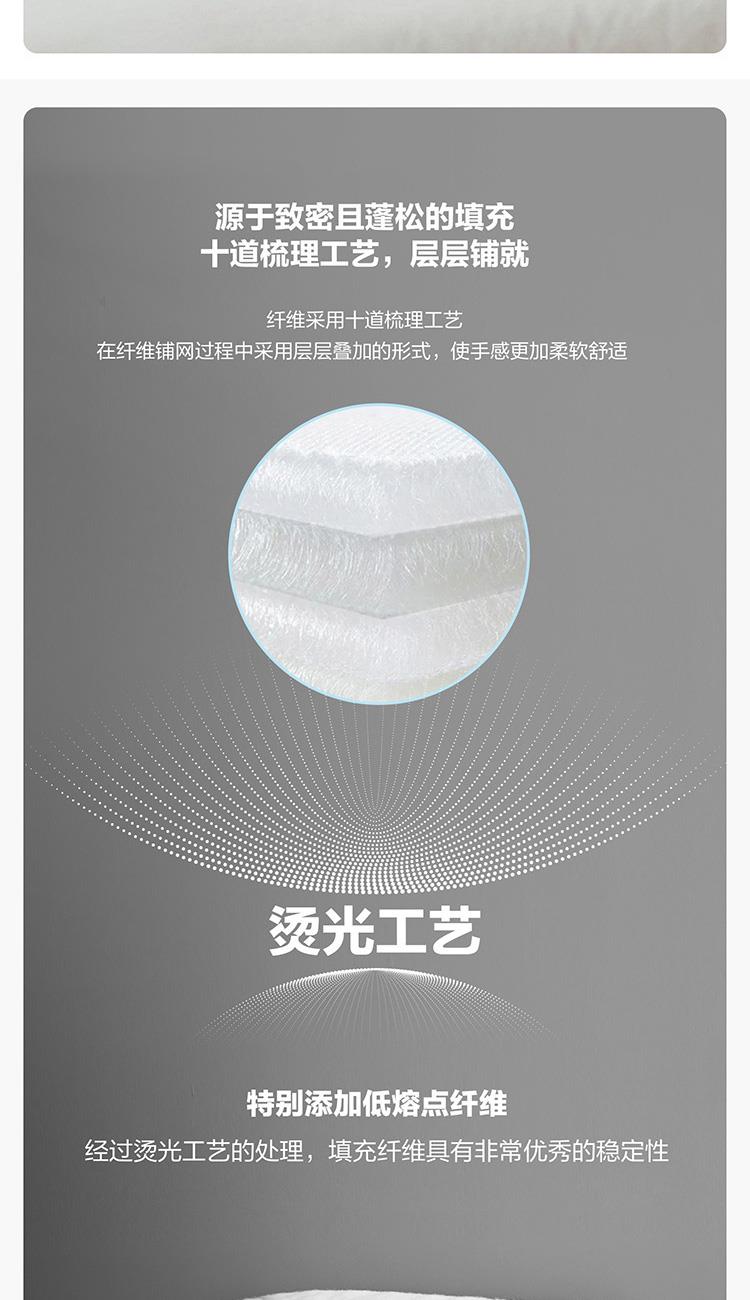 面料材質(zhì):聚酯纖維 填充材質(zhì):聚酯纖維 規(guī)格尺寸:200*230cm 填充重量:800g 外箱尺寸: 55*65*120cm 采用桃皮絨磨毛壓花面料,表面附有細(xì)密的絨毛,手感綿密,親膚舒適; 可迅速排濕;此外中空結(jié)構(gòu)減少了纖維20%的重量,被芯保持輕柔且在擠壓后纖維不易糾纏打結(jié),更加蓬松,即便長期使用,也能保持良好的回彈性,帶來舒柔溫暖的睡眠體驗(yàn)。