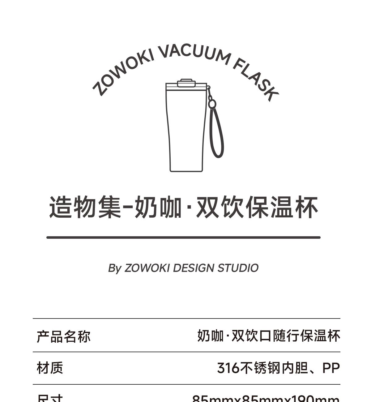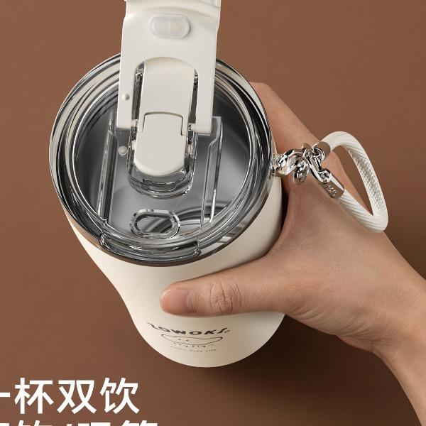 316不銹鋼內(nèi)膽,保溫保冷,四季可用。杯蓋雙飲設(shè)計(jì),小口吸管多場景適用。便攜提繩設(shè)計(jì),一拎即走。